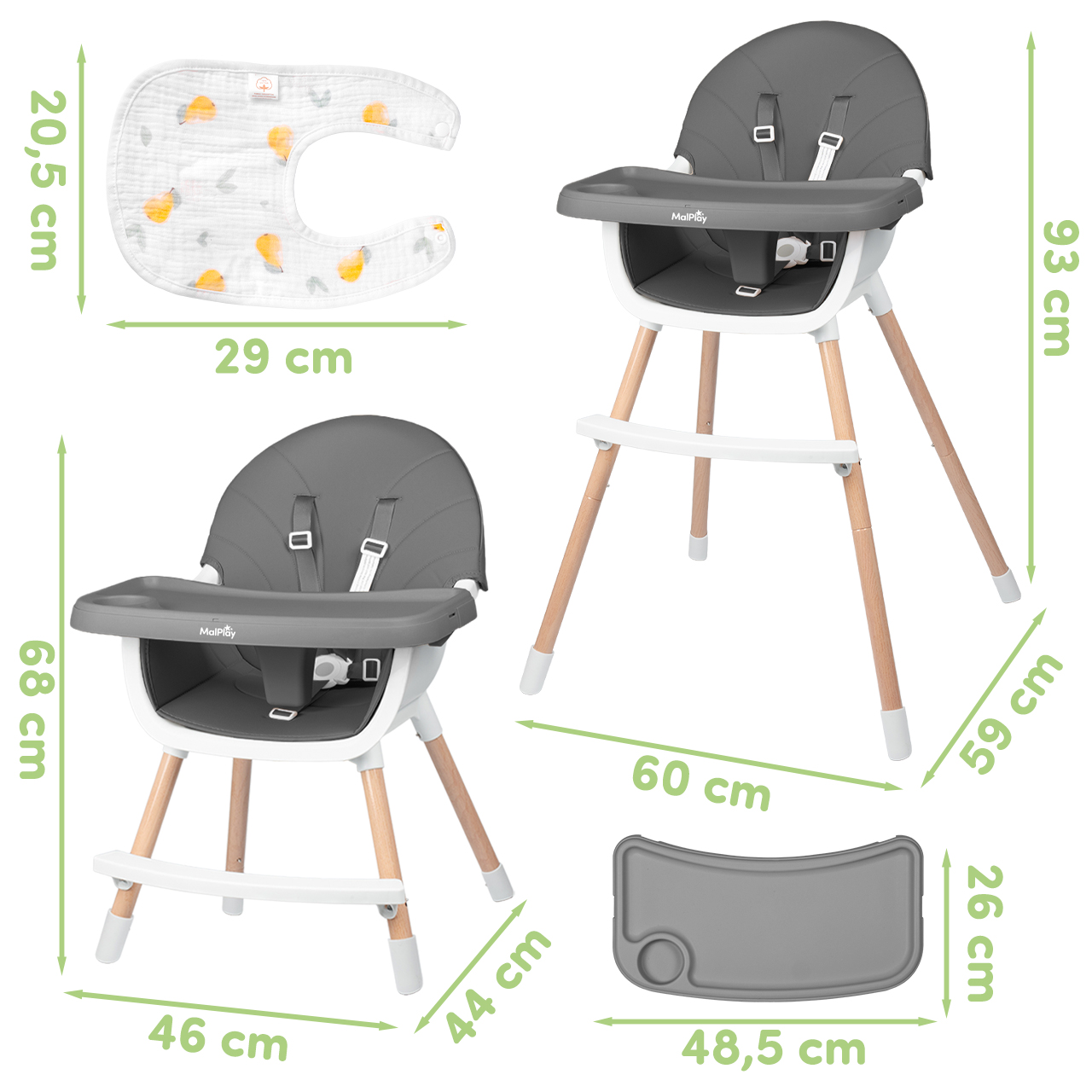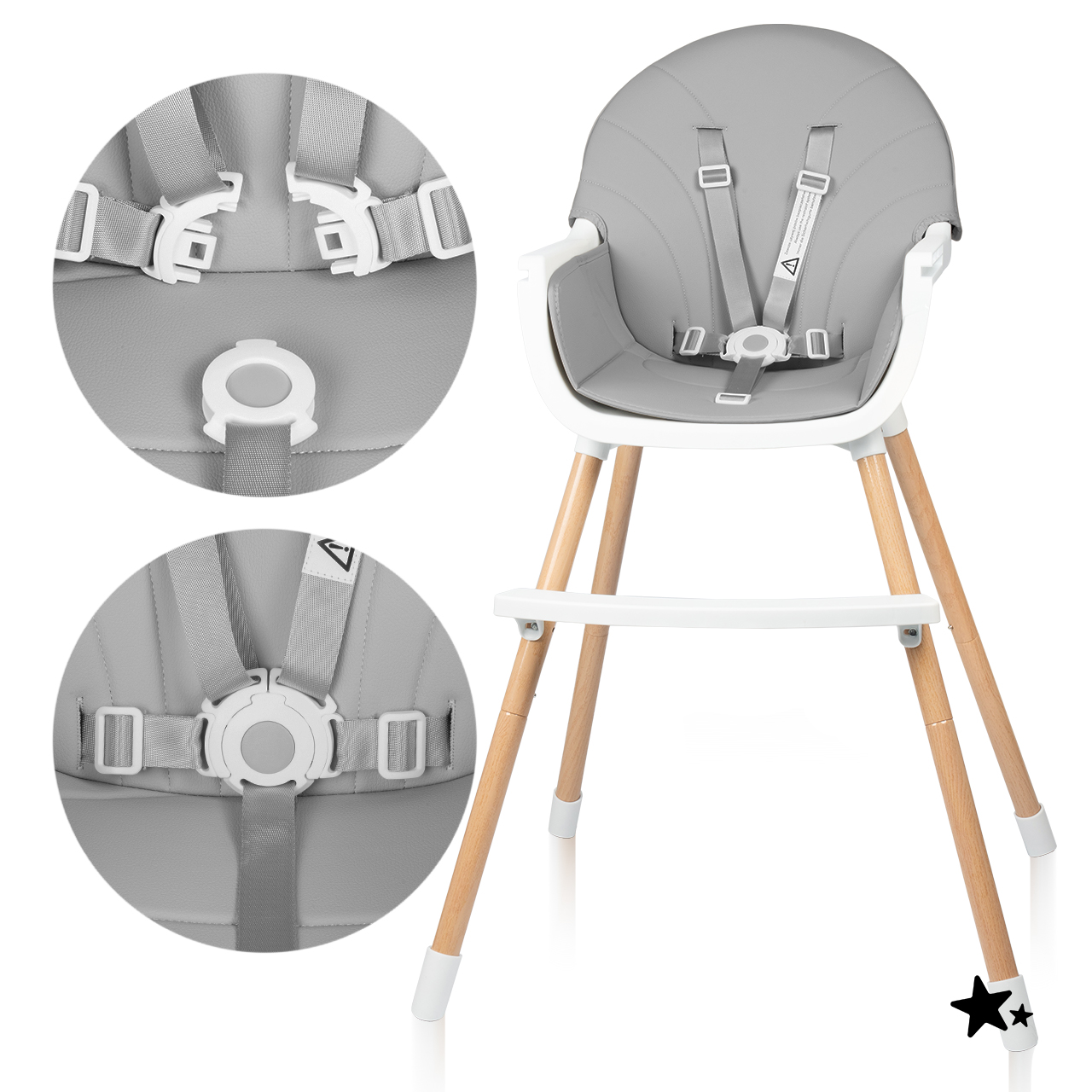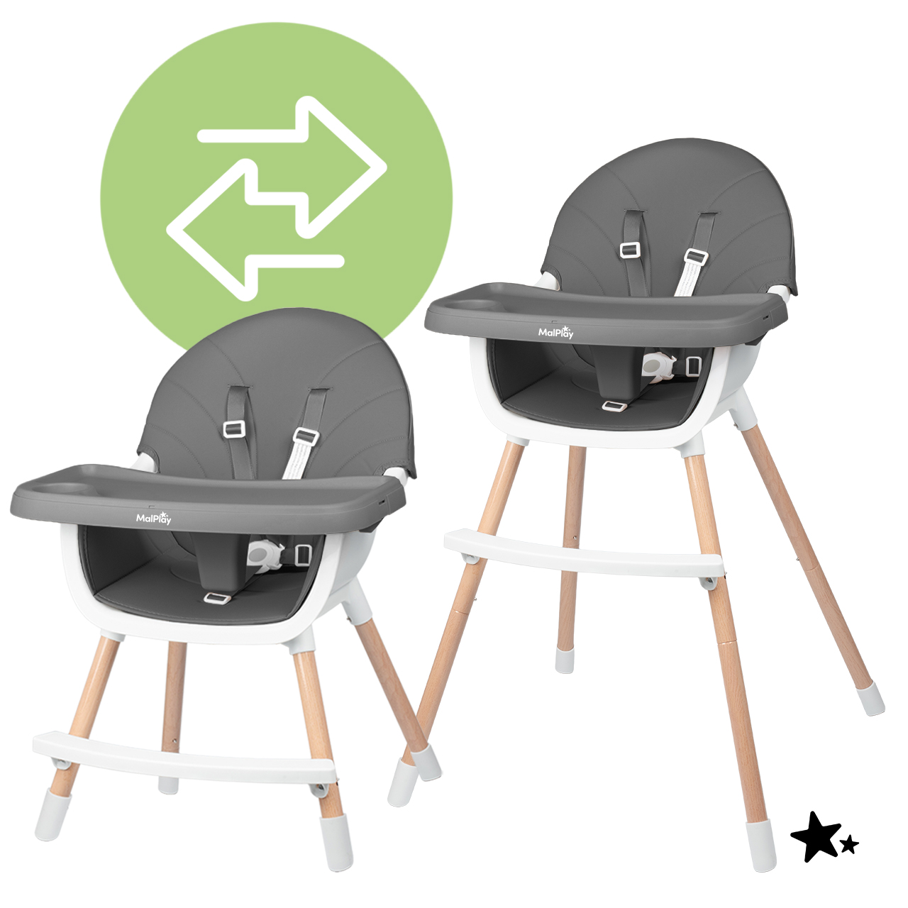 - 3 v 1 – vysoká a nízká židlička pro krmení a samostatná židlička pro starší dítě