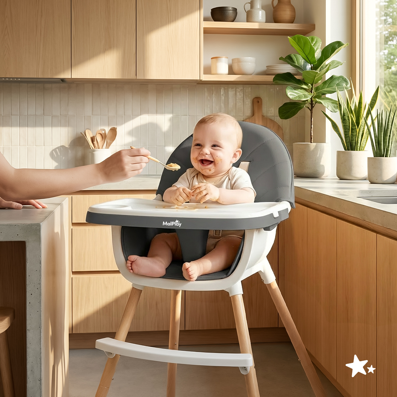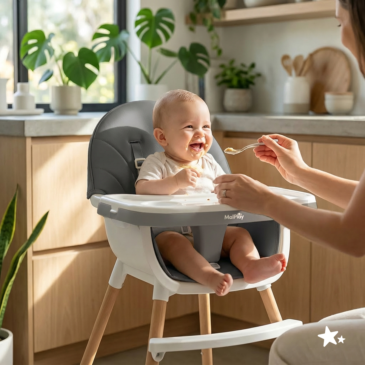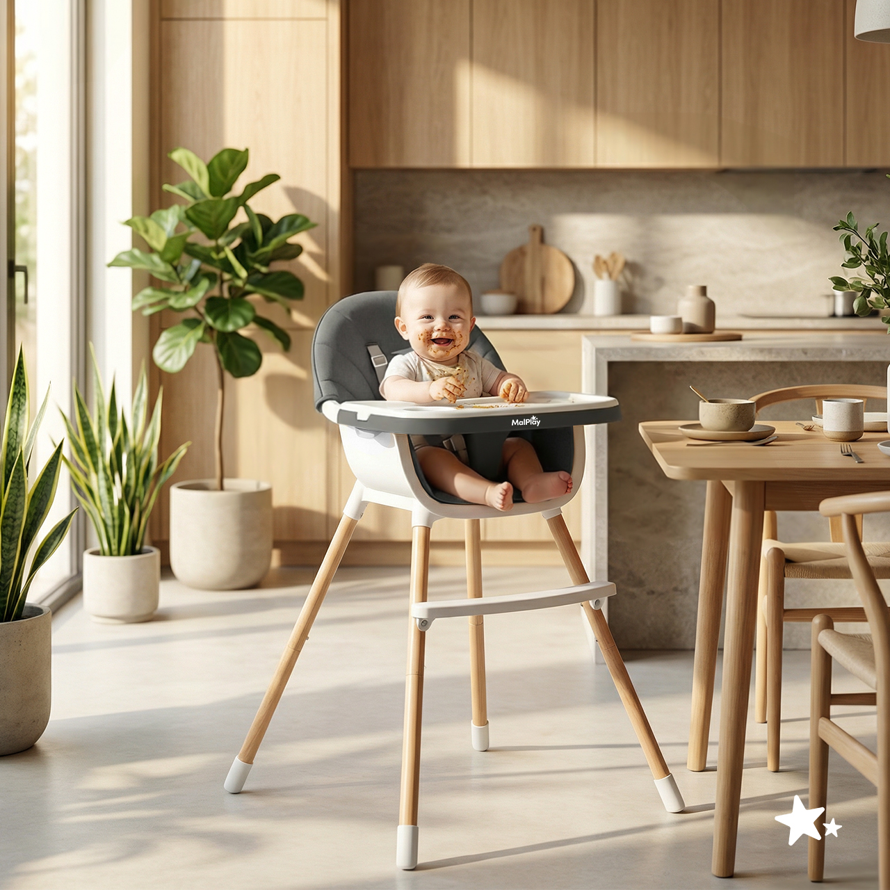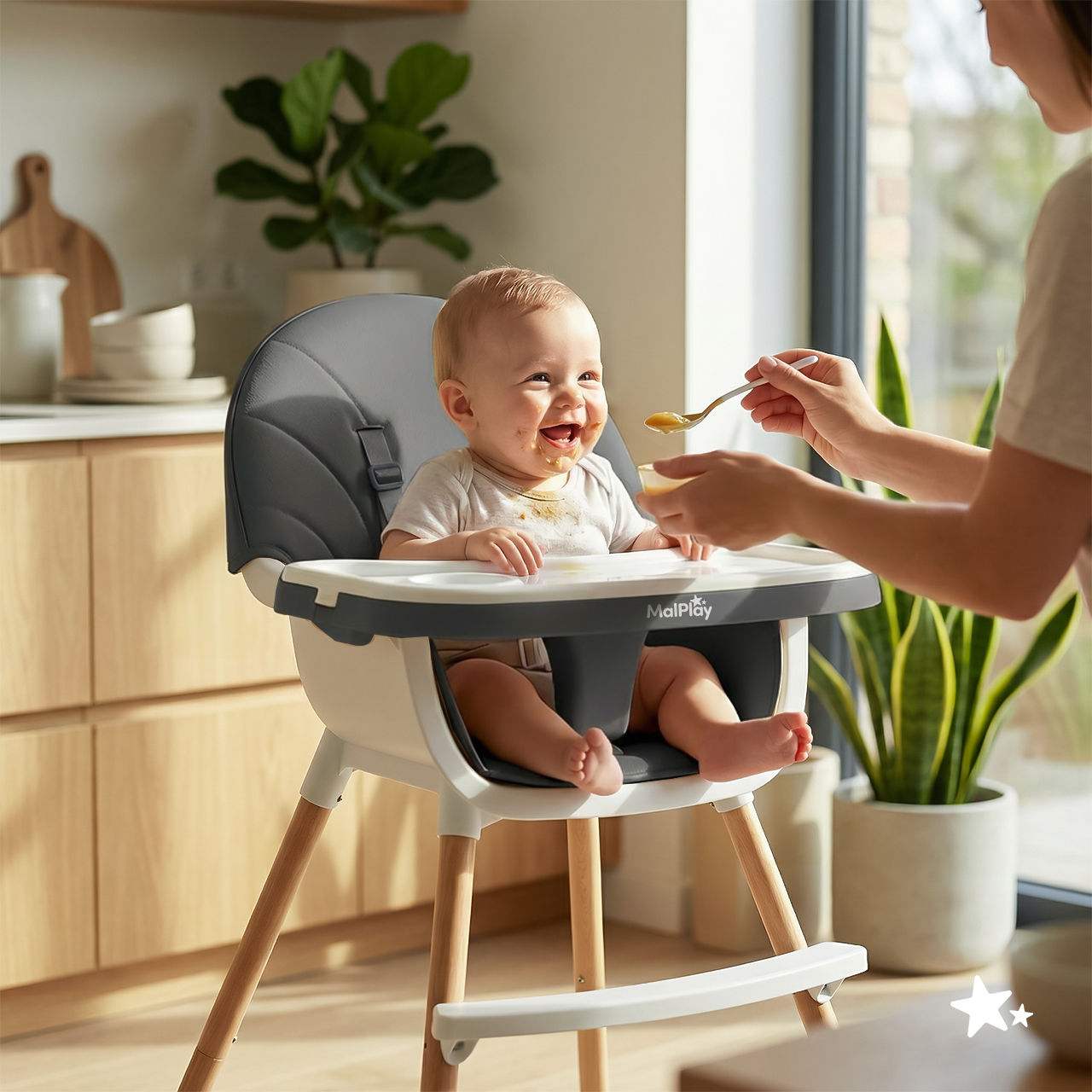 - 3 v 1 – vysoká a nízká židlička pro krmení a samostatná židlička pro starší dítě