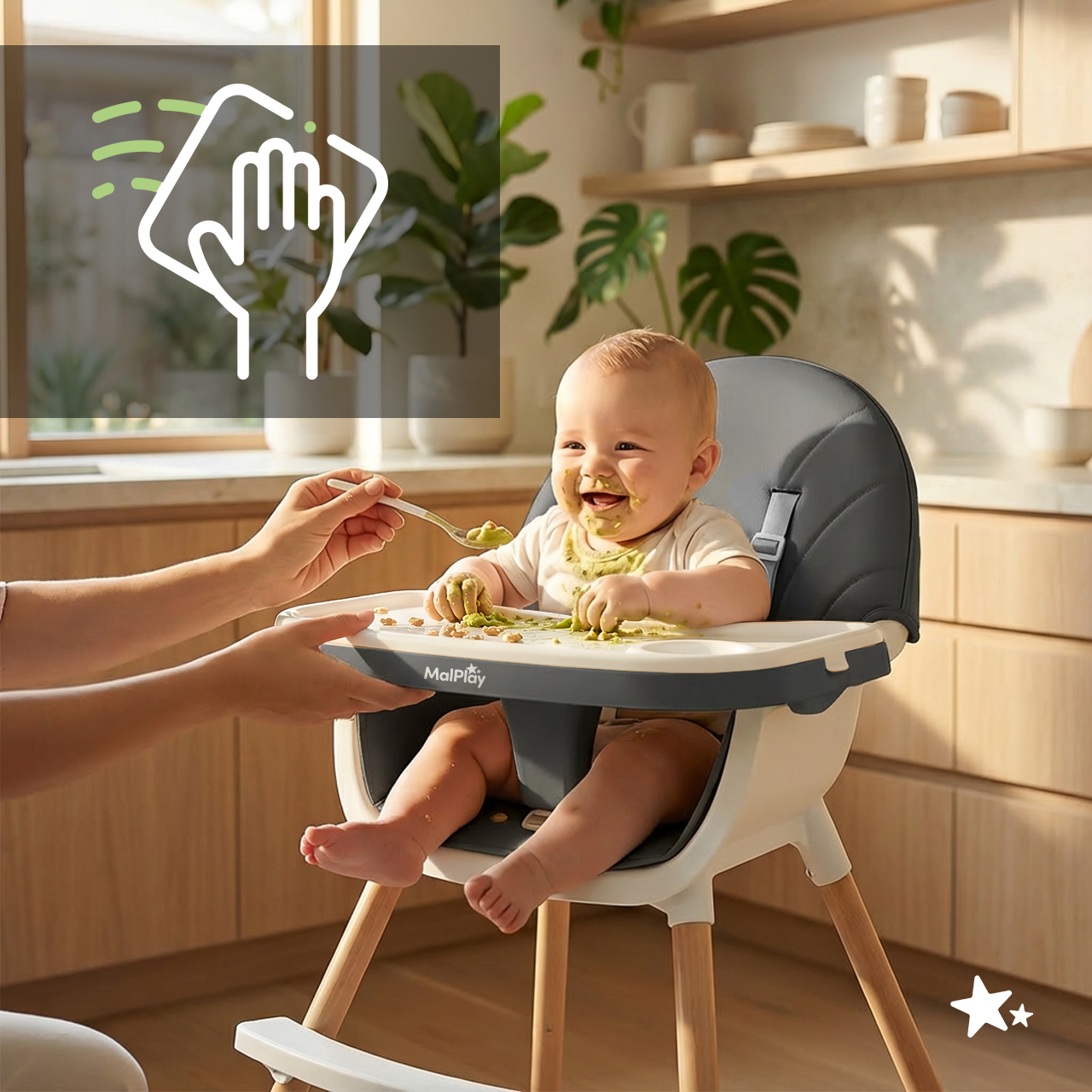 BITEO je multifunkční řešení, které bude vašemu dítěti sloužit po dlouhou dobu – od prvních jídel až po samostatné sezení u dětského stolu. Snadno ji přestavěte z dětské jídelní židličky na pohodlnou nízkou židličku. Jednoduše odšroubujte spodní nožičky a můžete vyrazit!