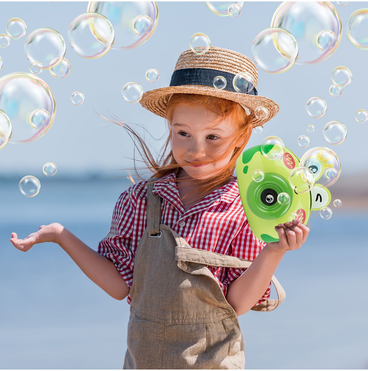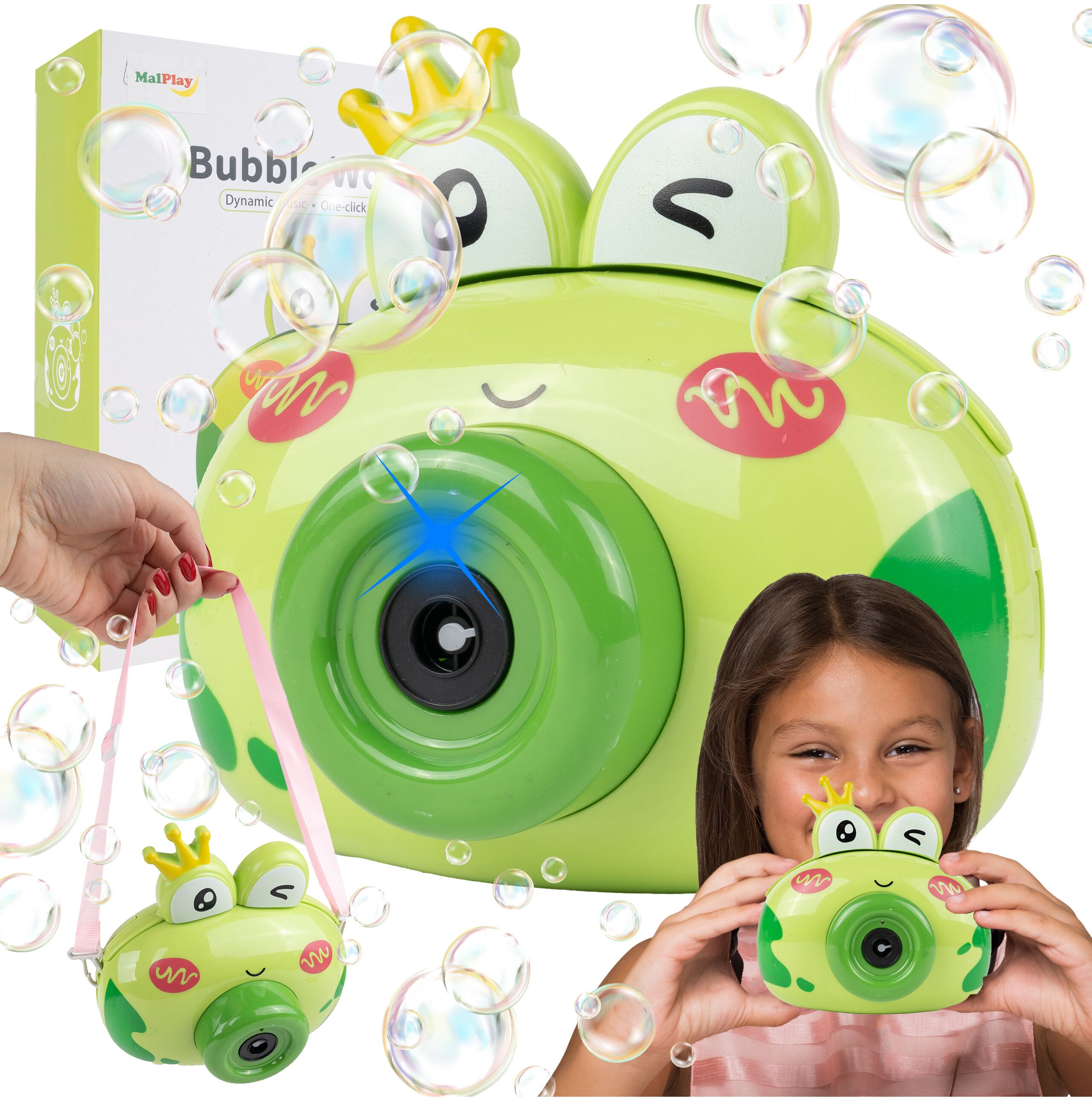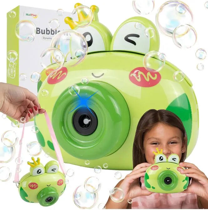 Bańki mydlane to ulubiona zabawa małych i dużych dzieci. Rewelacyjna maszynka do robienia baniek mydlanych - aparat w kształcie uroczej żabki z koroną zapewni mnóstwo radości każdemu dziecku. Podziwiaj szybujące w powietrzu dziesiątki tęczowych baniek mydlanych.