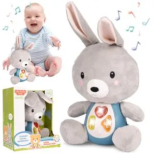 Okouzlující Béžový zajíček okamžitě vykouzlí úsměv na tváři vašeho dítěte. Králík skáče a hýbe ušima a nosem. Při pohybu pouze nosem králíček vydává zvuky.