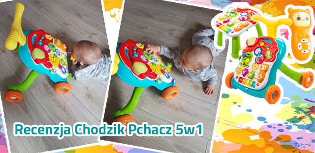 „...Chodítko má zvukové efekty, jemné svetielka, telefón a ďalšie doplnky umožňujúce hru, ležanie či sedenie (pretože odtláčadlo sa dá premeniť na stolík, nožičky sú súčasťou súpravy).
