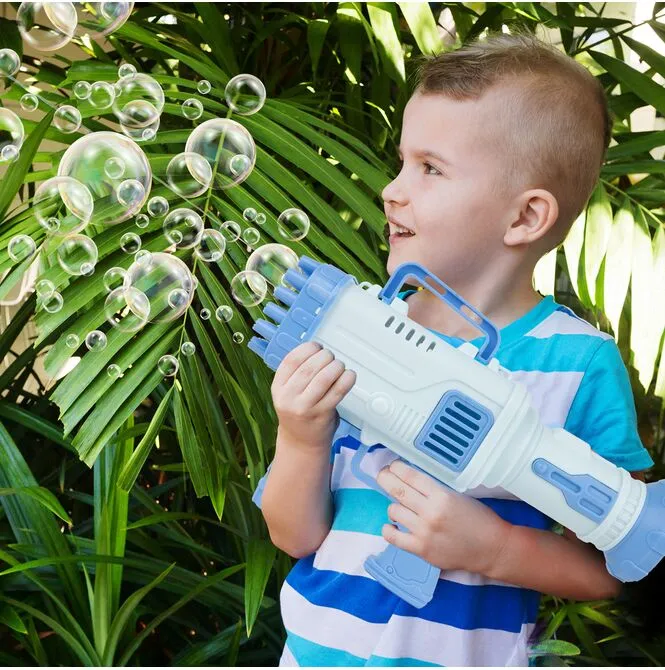 Mýdlové bubliny jsou oblíbenou hrou malých i velkých dětí. Fantastický stroj na výrobu mýdlových bublin ve tvaru super bazuky udělá každému dítěti spoustu radosti. Obdivujte desítky duhových mýdlových bublin vznášejících se ve vzduchu.