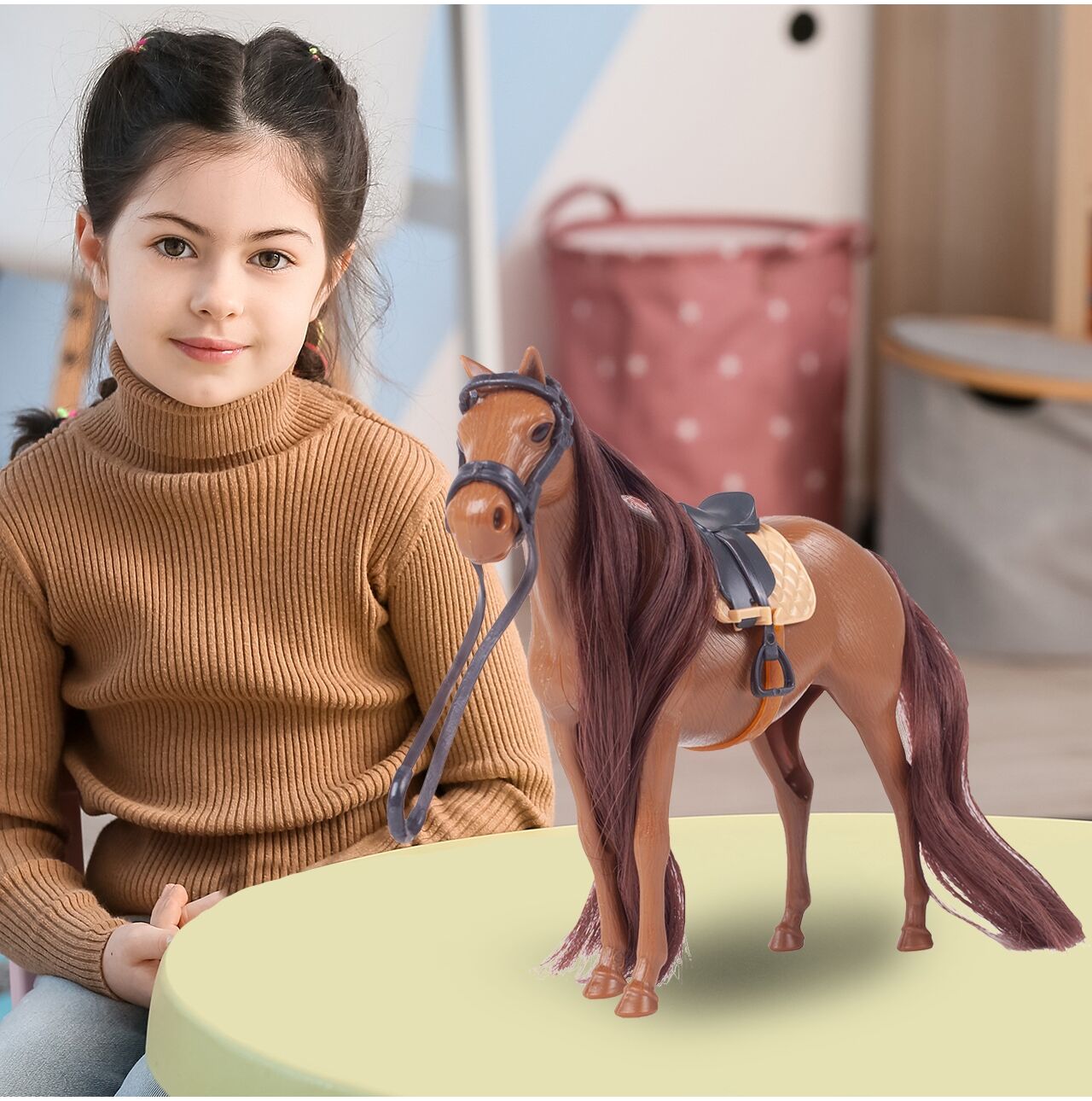 Hraje si vaše dcera ráda se zvířátky a sbírá je? Náš upravovací kůň s uzdou a sedlem udělá velkou radost každé holčičce!