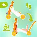 Jednym ruchem montujesz siedzisko i powstaje jeździk. Dziecko odpycha się nóżkami, trenując równowagę, siłę i koordynację. Ty możesz pomóc – z tyłu jest rączka do prowadzenia.
