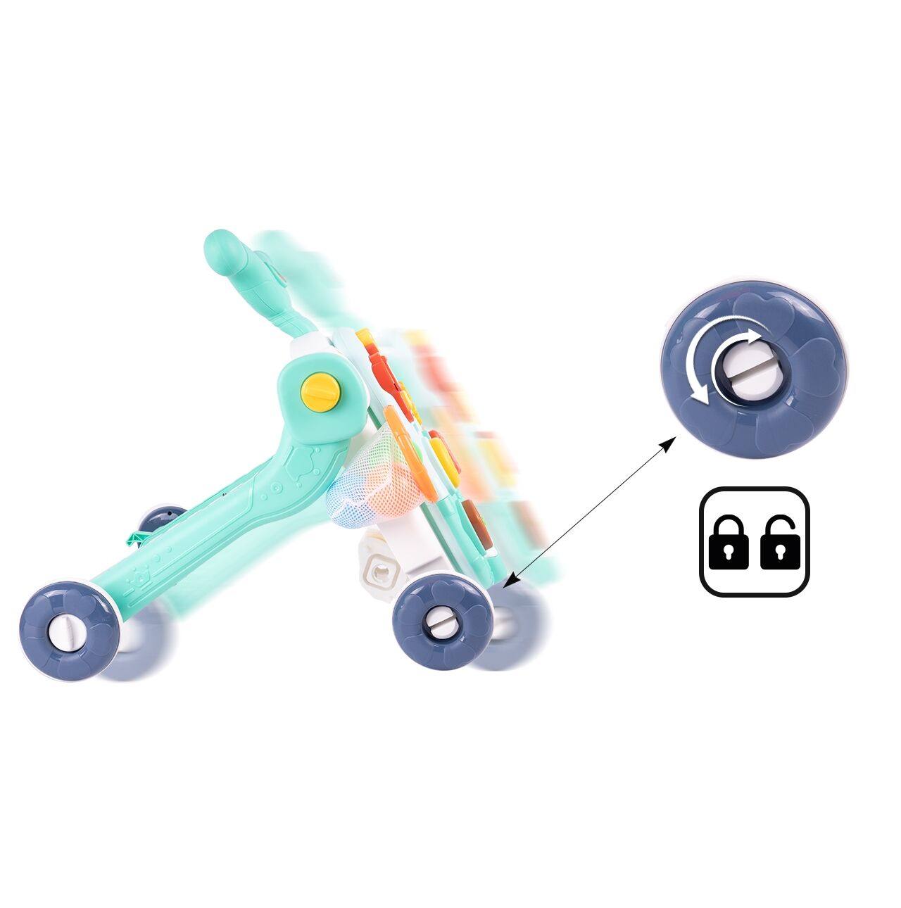 Możliwość blokady kółek - jeśli zechcesz by dziecko się nie przemieszczało albo przemieszczało bardzo wolno.