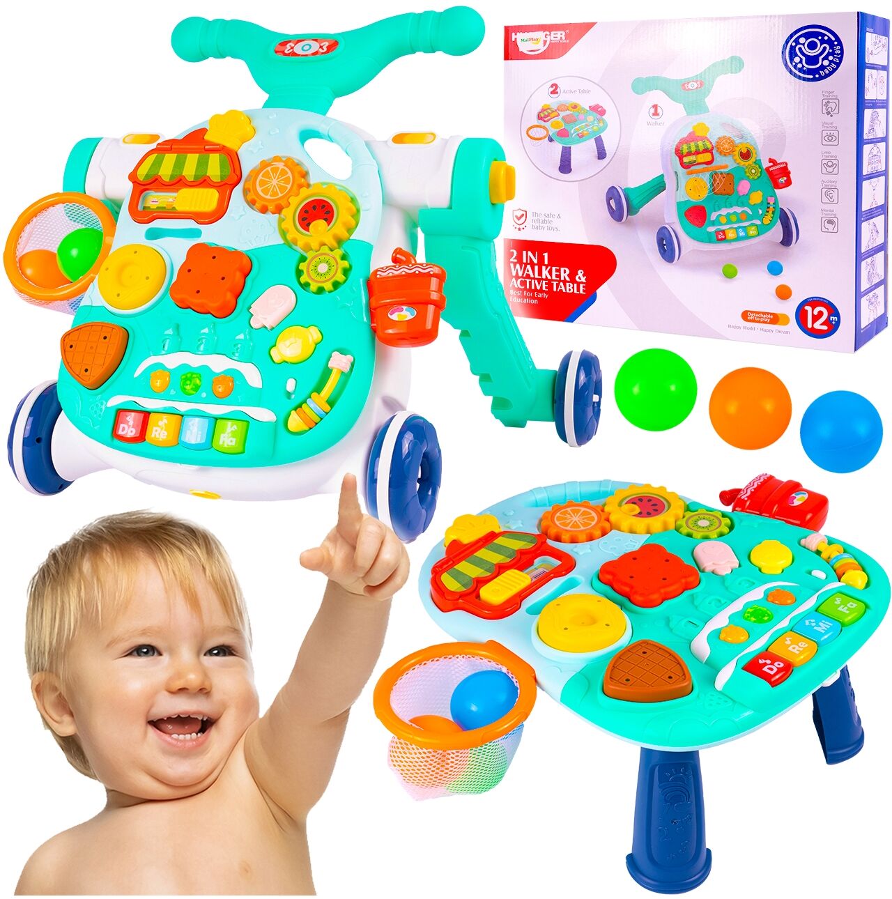 Chodzik Jeździk Pchacz Stolik Edukacyjny 2w1 + Piłki