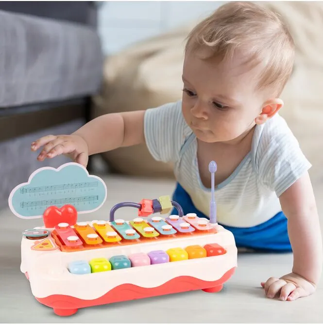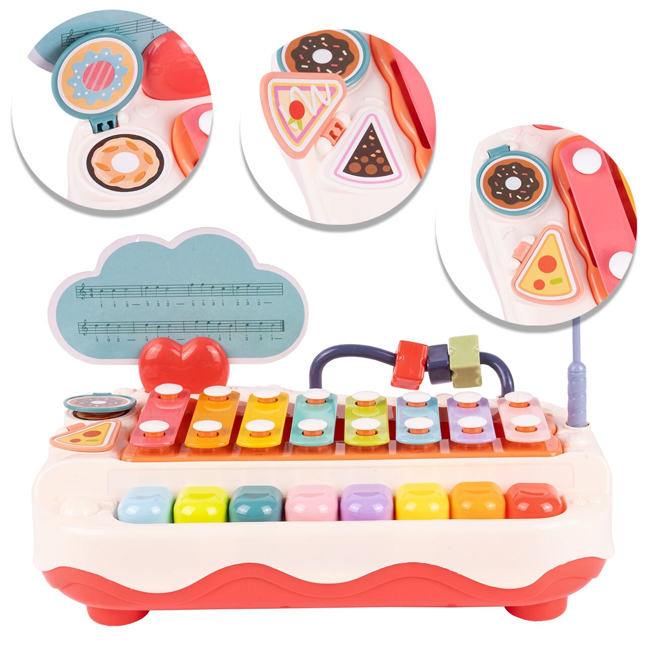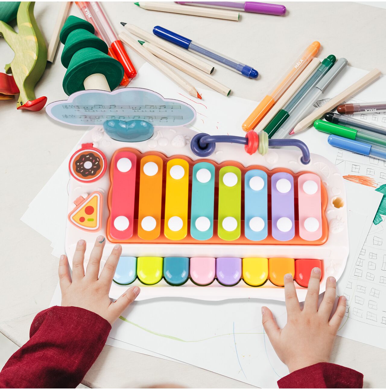Kovové klávesy pri údere vydávajú zvuky, ktoré sú mimoriadne príjemné pre ucho a nie sú príliš hlasné ani obťažujúce okolie. Okrem toho súprava obsahuje noty, takže sa vaše batoľa môže naučiť hrať špecifické melódie.