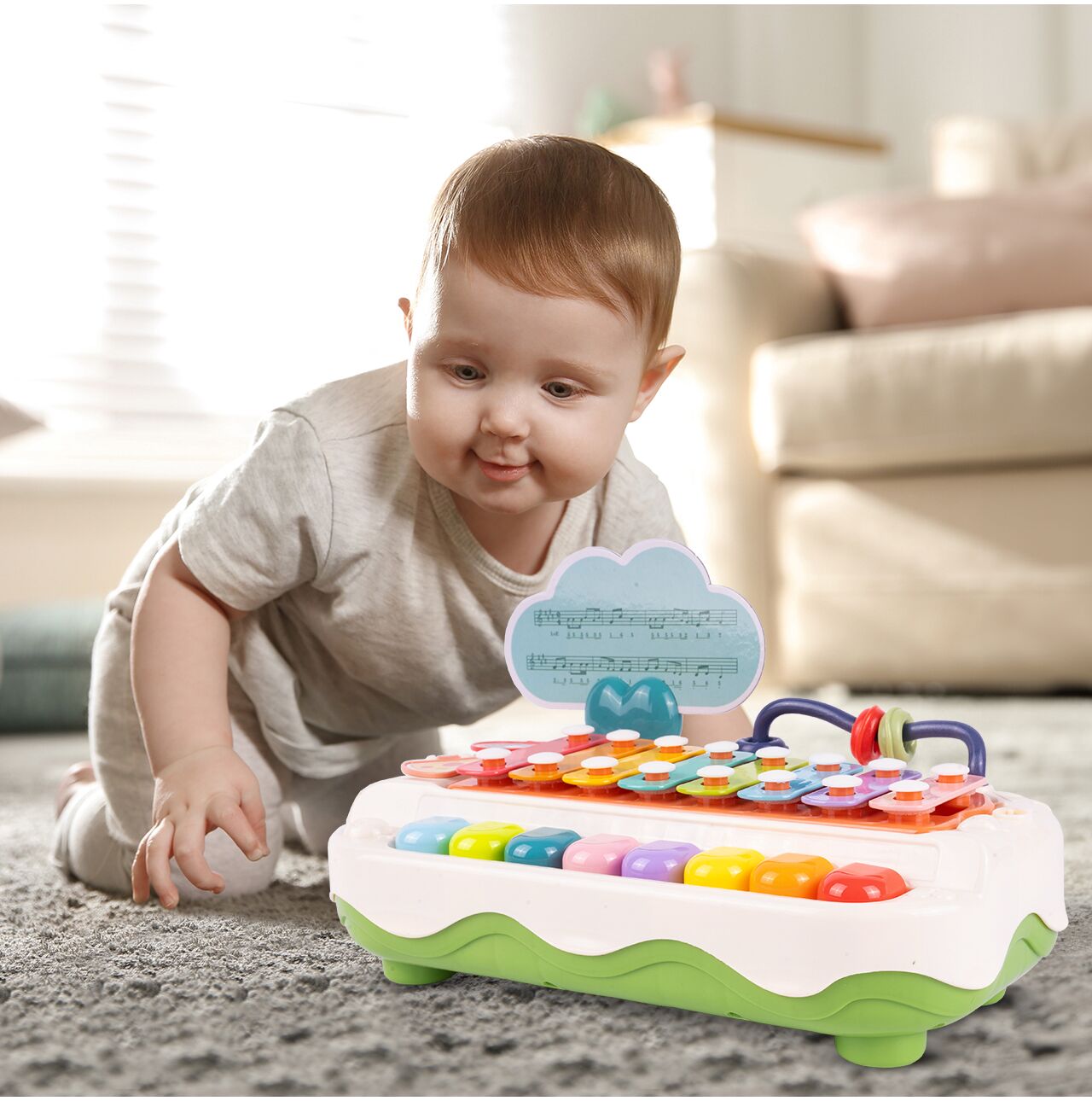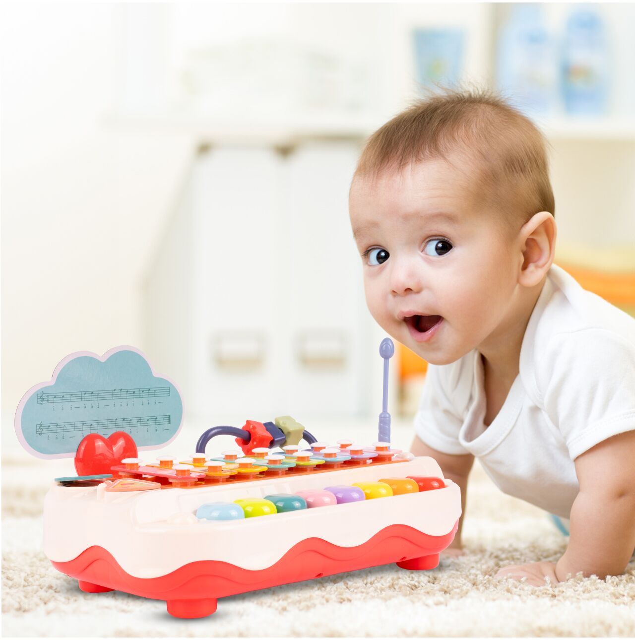 Hračka sa skladá z 8 rôznofarebných kláves , z ktorých každé po stlačení zabaví naše dieťa iným úžasným zvukom z radu .