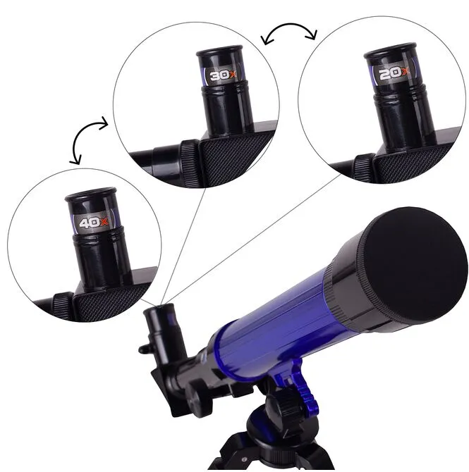 • dalekohled s čočkou se zvětšením 20x a dvěma čočkami se zvětšením 30x a 40x,