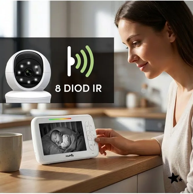 Automatické infračervené noční vidění vám umožňuje sledovat vaše dítě i za velmi slabého osvětlení, aniž byste museli rozsvěcet světla. Kamera využívá 8 infračervených LED diod a světelný senzor , díky čemuž je přepínání do nočního režimu pohodlné a intuitivní. Jedná se o praktické řešení pro noční probuzení, zdřímnutí a neustálý dohled, aniž byste museli neustále navštěvovat pokoj.