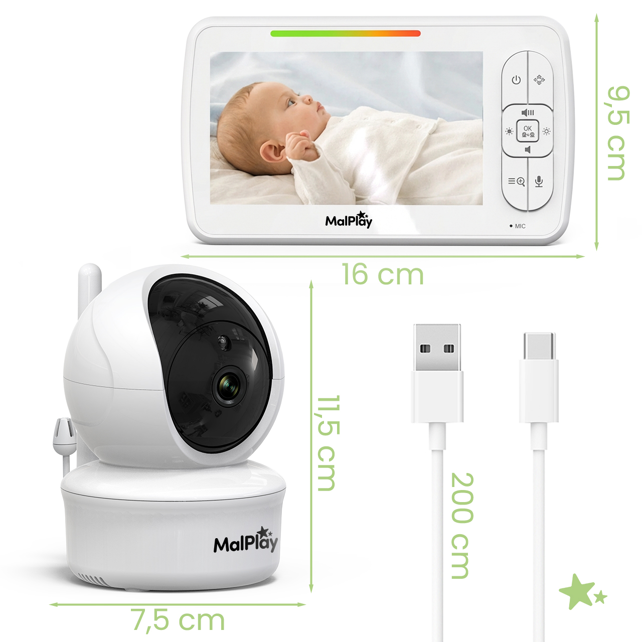 - 1× Rodičovská jednotka (5,0" LCD monitor)