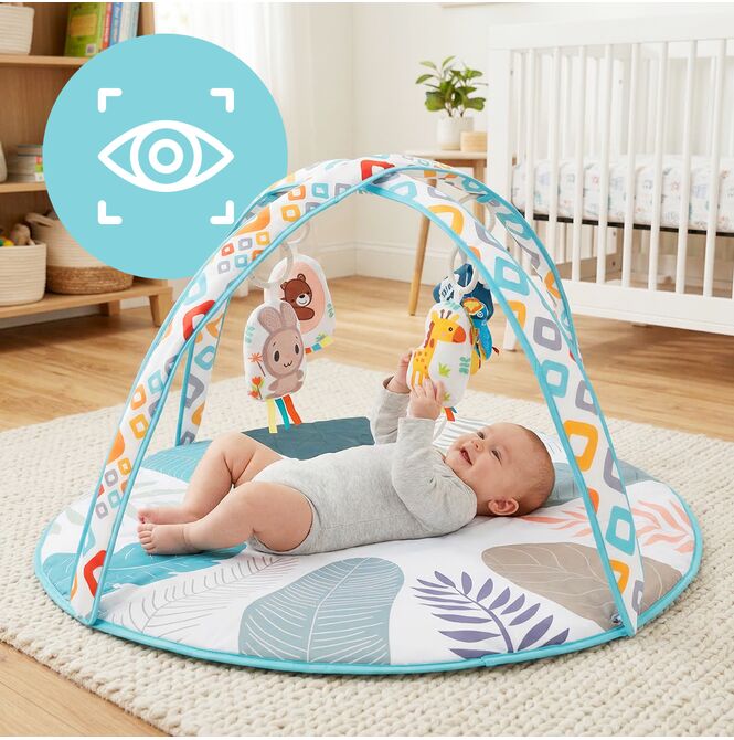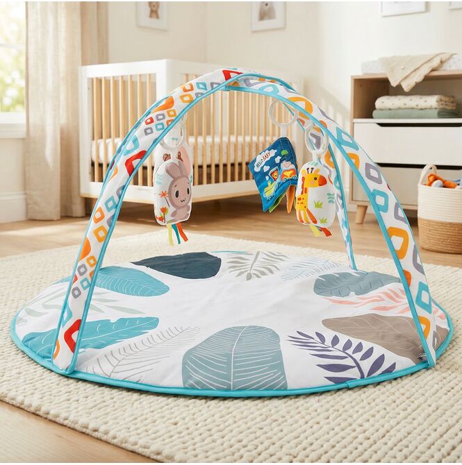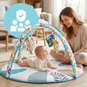 Podložka je navržena tak, aby vaše dítě doprovázela různými fázemi denních aktivit. Vaše dítě si může ležet na zádech a pozorovat zavěšené prvky, a poté si s podložkou hrát na bříšku. Toto praktické řešení nabízí více možností použití jedné podložky každý den.