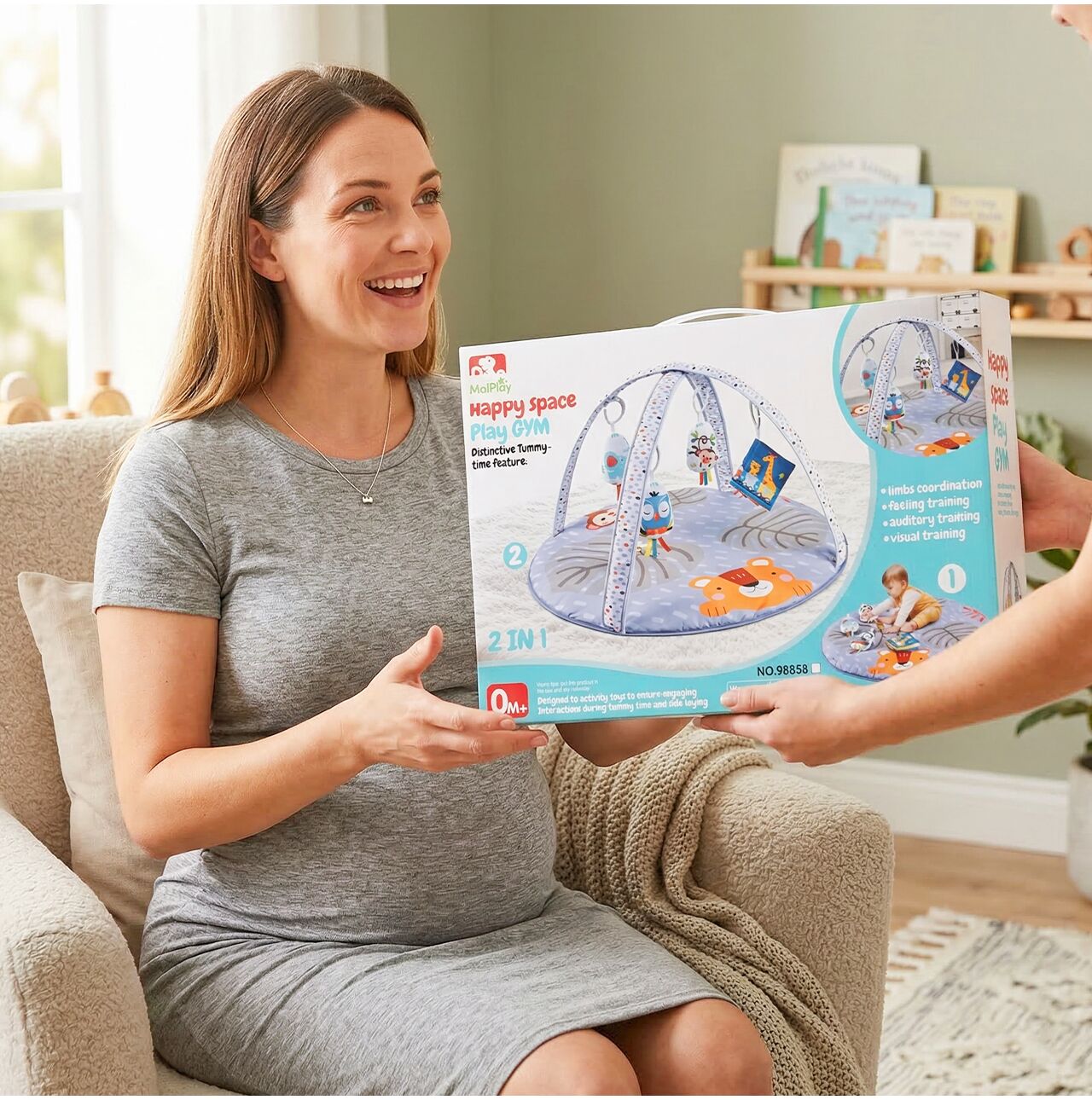 Hrací podložka 2 v 1 je praktický a promyšlený dárek pro miminka od prvních měsíců života. Je to dárek, který nejen přináší radost, ale také podporuje každodenní vývoj dítěte, takže je ideální na oslavu narození miminka, k narození dítěte, křtiny nebo jako dárek pro novopečené rodiče.