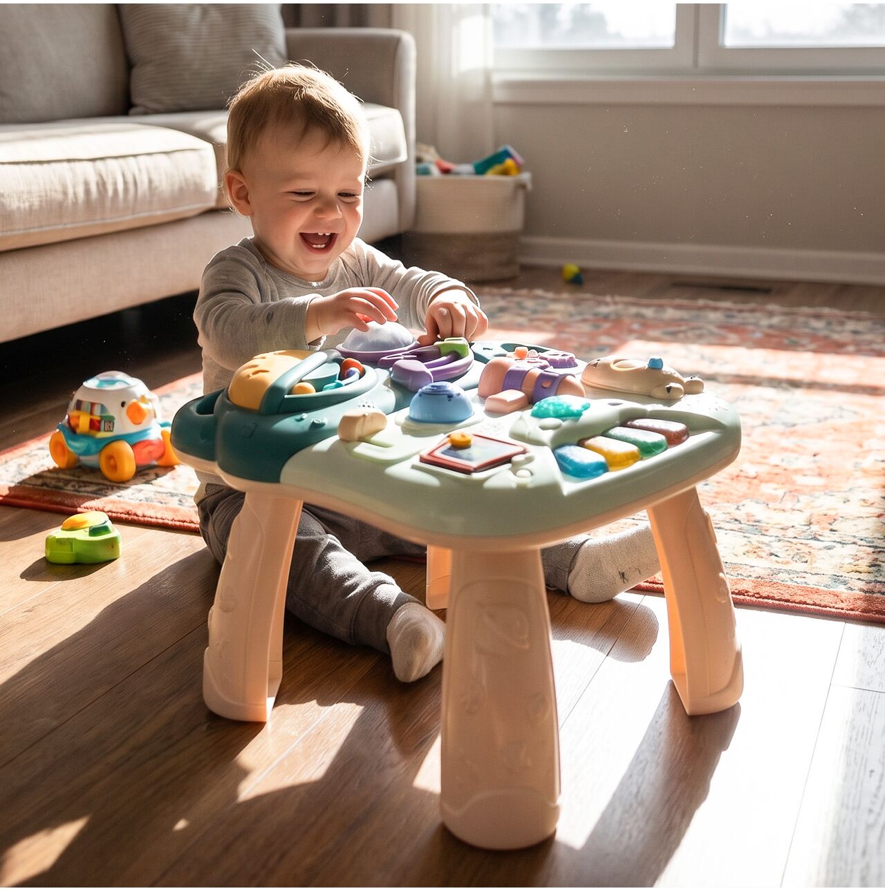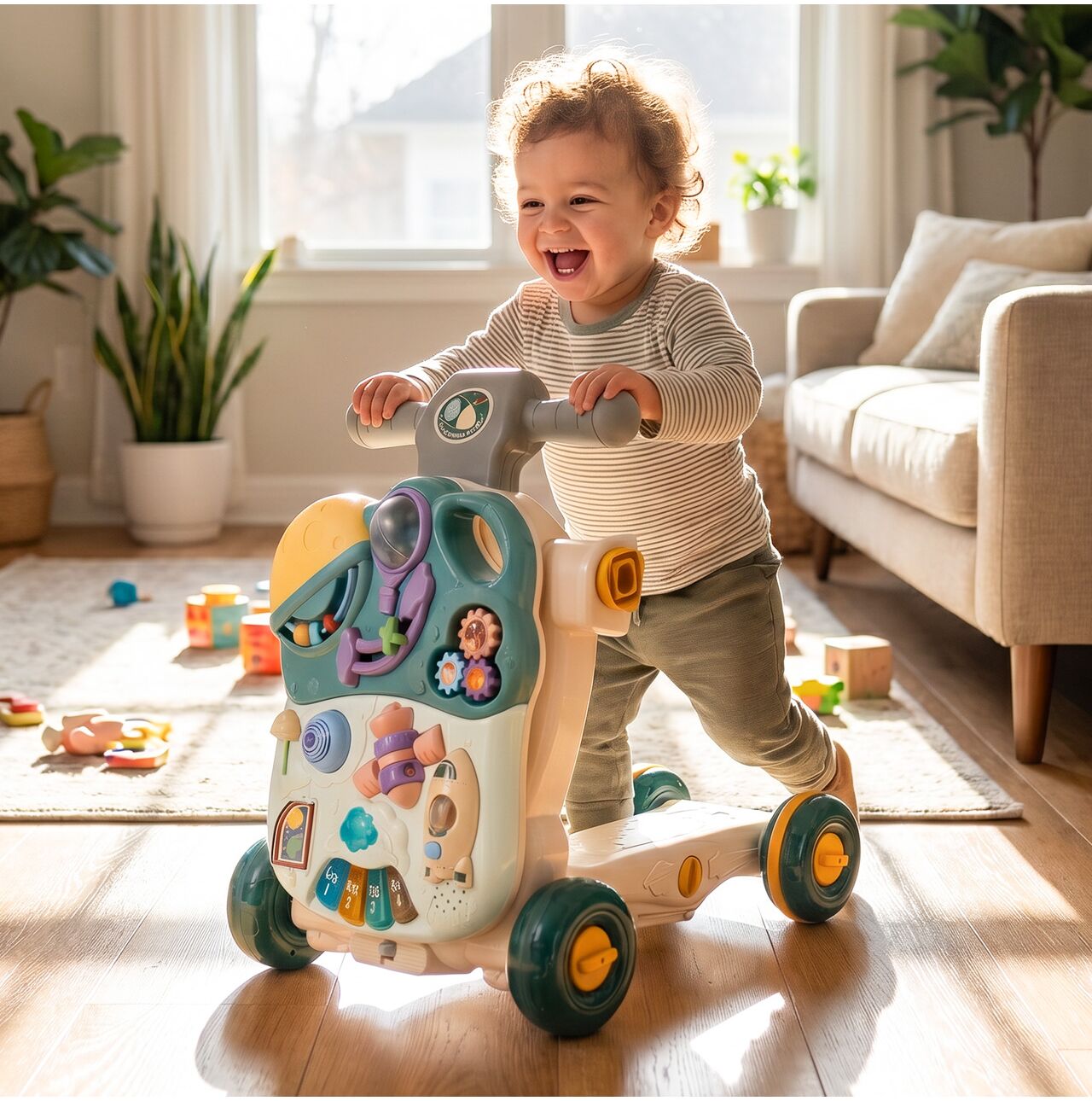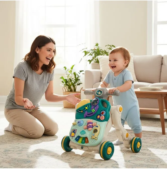 Tato hračka je ideální pro každodenní aktivity. Děti si s ní mohou procvičovat chůzi, hrát si s panelem a rozvíjet samostatnost.
