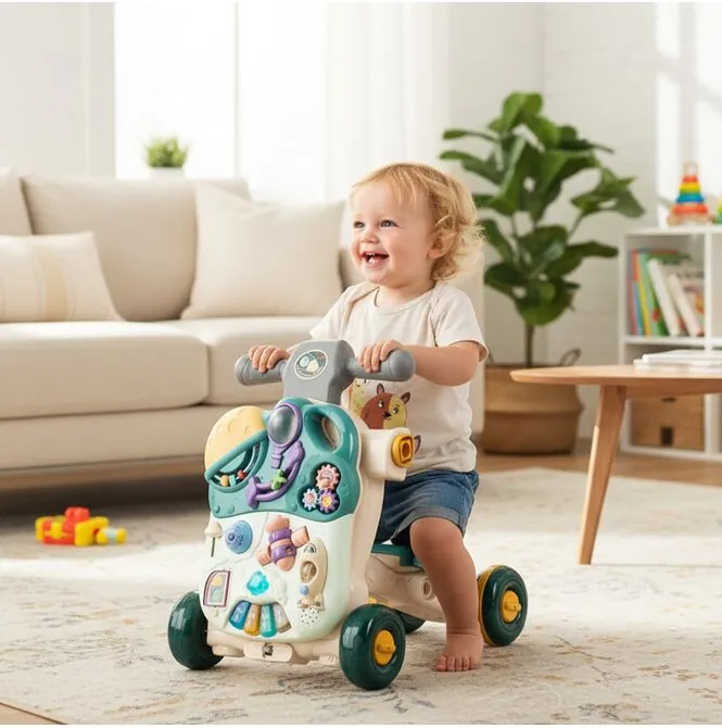 4 v 1 dětské chodítko, odrážedlo, odrážedlo, vzdělávací stůl a interaktivní panel
