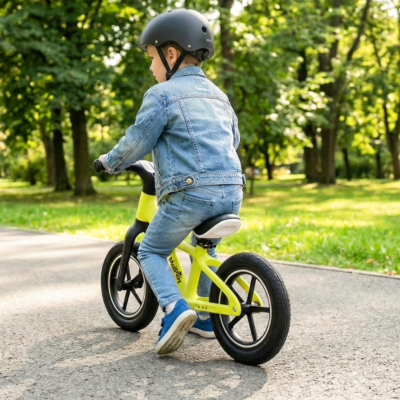 Díky tomu kolo váží pouze 3,4 kg – pro dítě je snazší udržet rovnováhu a vy nemusíte po hřišti nosit 6–7 kg kovu.