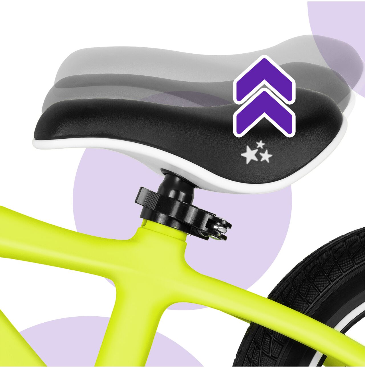 Systém rychlého uzamčení umožňuje snadné nastavení výšky sedla podle výšky vašeho dítěte.
