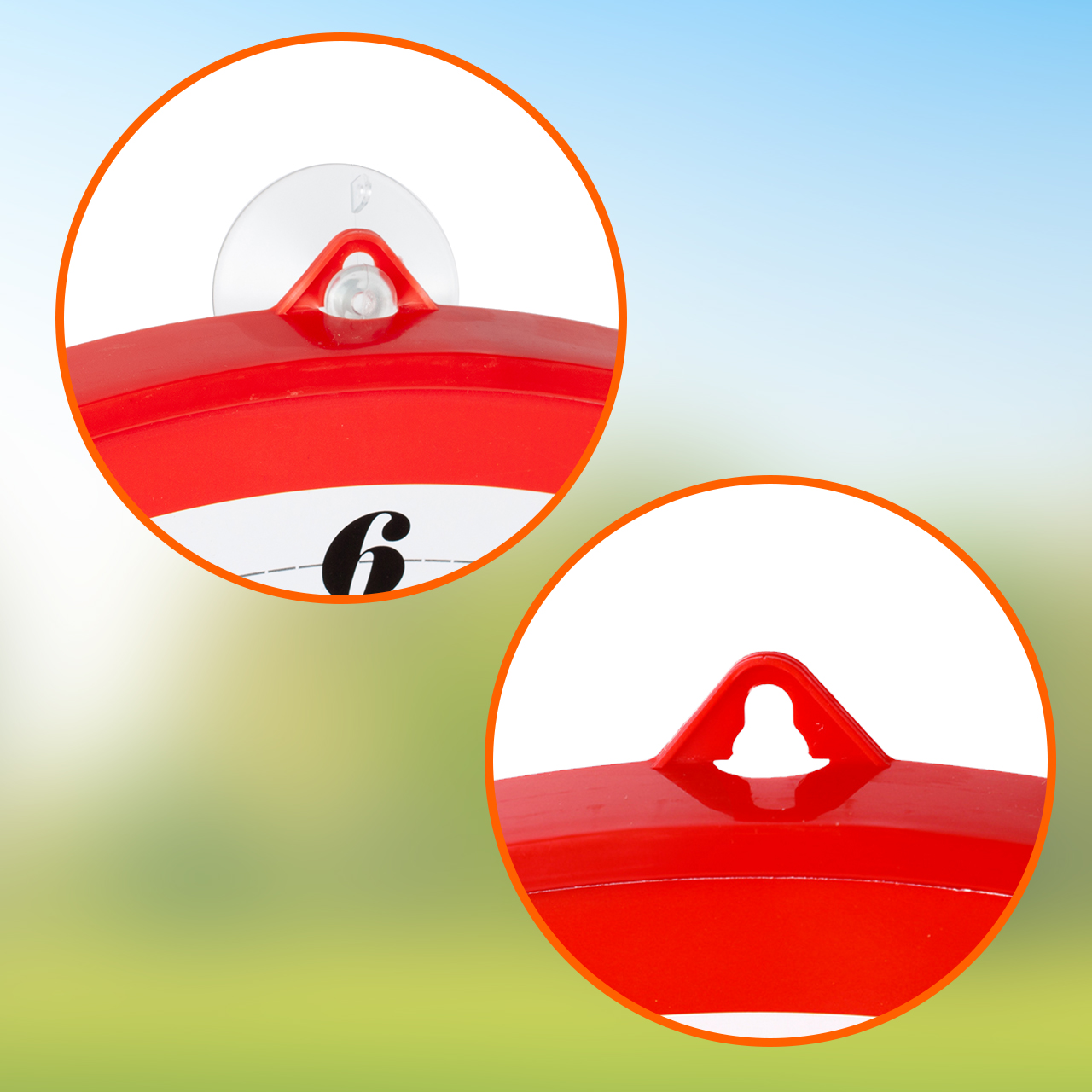 Terč o průměru 41 cm má závěsný otvor a přísavku, což umožňuje jeho montáž na zeď, dveře nebo okno. Jasně viditelné číslování vám umožňuje sledovat výsledky.