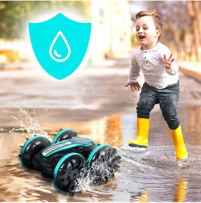Utesnená konštrukcia a kolesá s pádlami umožňujú dynamickú jazdu na mokrom povrchu, tráve alebo snehu. Pôsobivý rozstrek vody a spoľahlivá trakcia zaručujú vzrušenie bez ohľadu na počasie.