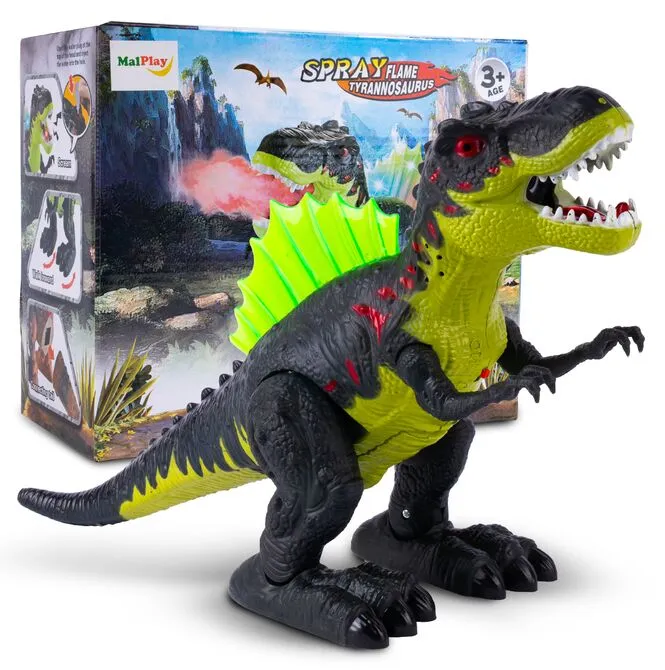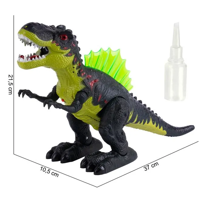 Dinozaur po włączeniu idzie do przodu wydając przy tym przeraźliwe dźwięki Jego grzbiet oraz paszcza świecą. Dodatkowo po nalaniu wody w otwór na czubku głowy zaczyna się wydobywać z paszczy para wodna, imitująca dym