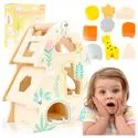 • Elementy: drewniane klocki geometryczne i figurki zwierząt do sortowania