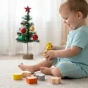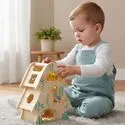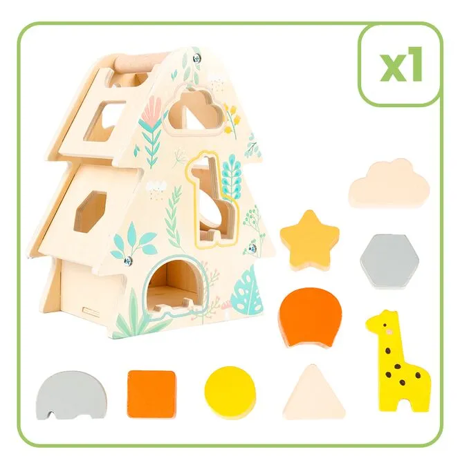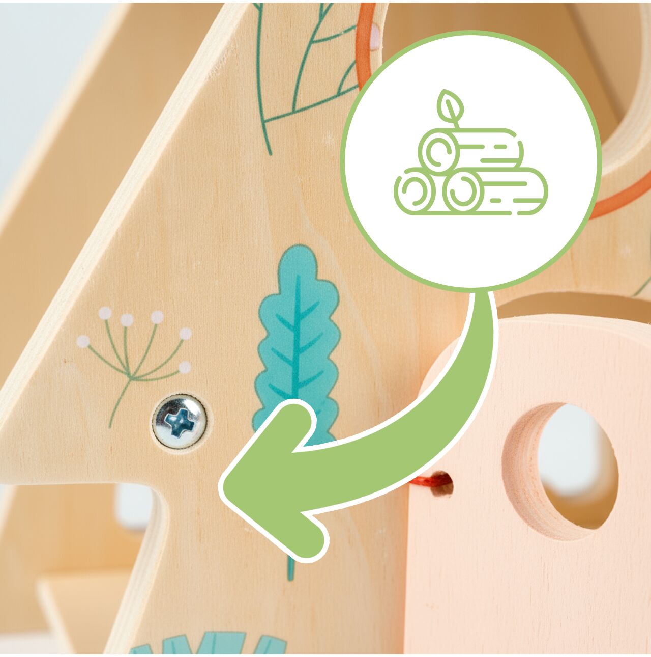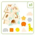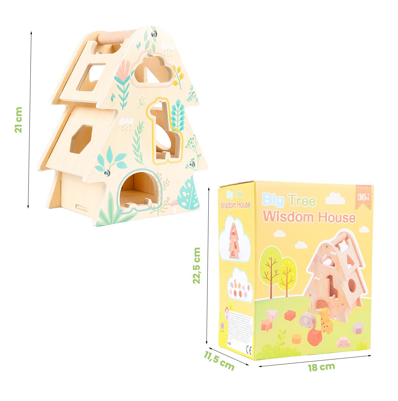 • 1 × drewniany sorter–domek w kształcie drzewka z uchwytem