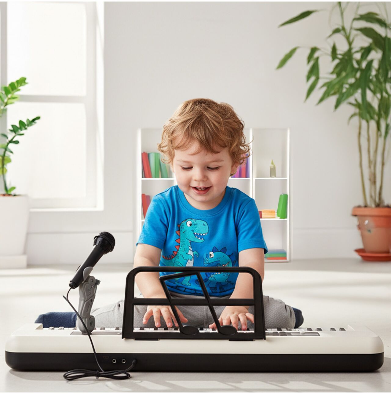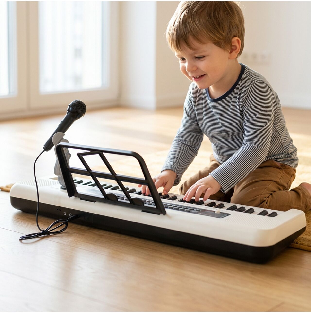 S 200 tóny a 200 rytmy nabízí klávesnice podobné možnosti jako větší nástroje. Děti mohou experimentovat, vytvářet si vlastní skladby a kombinovat různé hudební styly – od popu po klasiku.