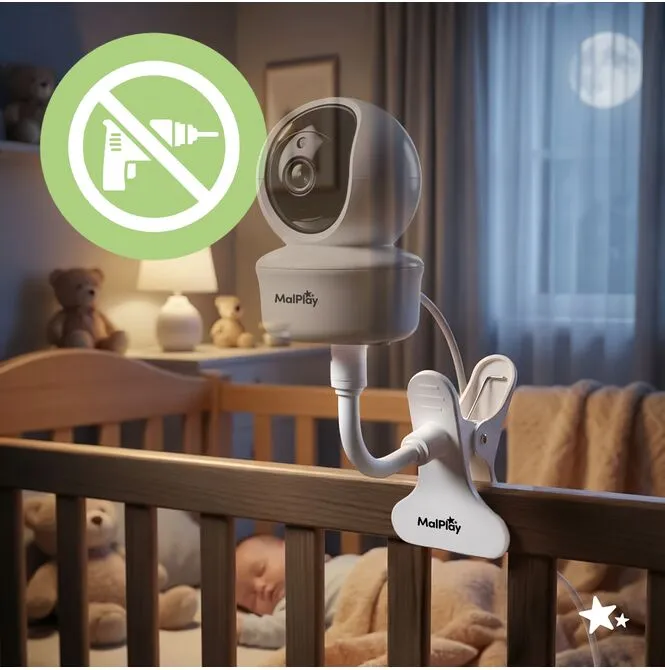 - Nastavitelné umístění kamery – snadno si upravte úhel pohledu tak, aby vyhovoval vaší posteli nebo koutku pro odpočinek