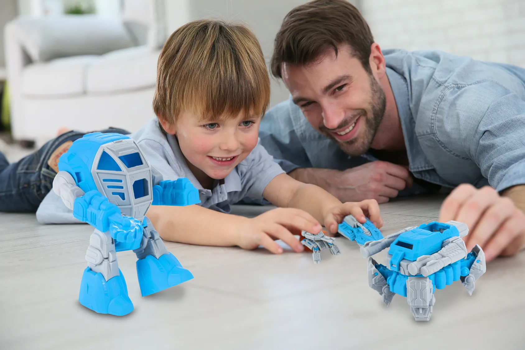 Rozmanitost prvků v sadě umožňuje dítěti samostatně si vybrat, které vozidlo nebo robot bude pro daný úkol nejlepší.