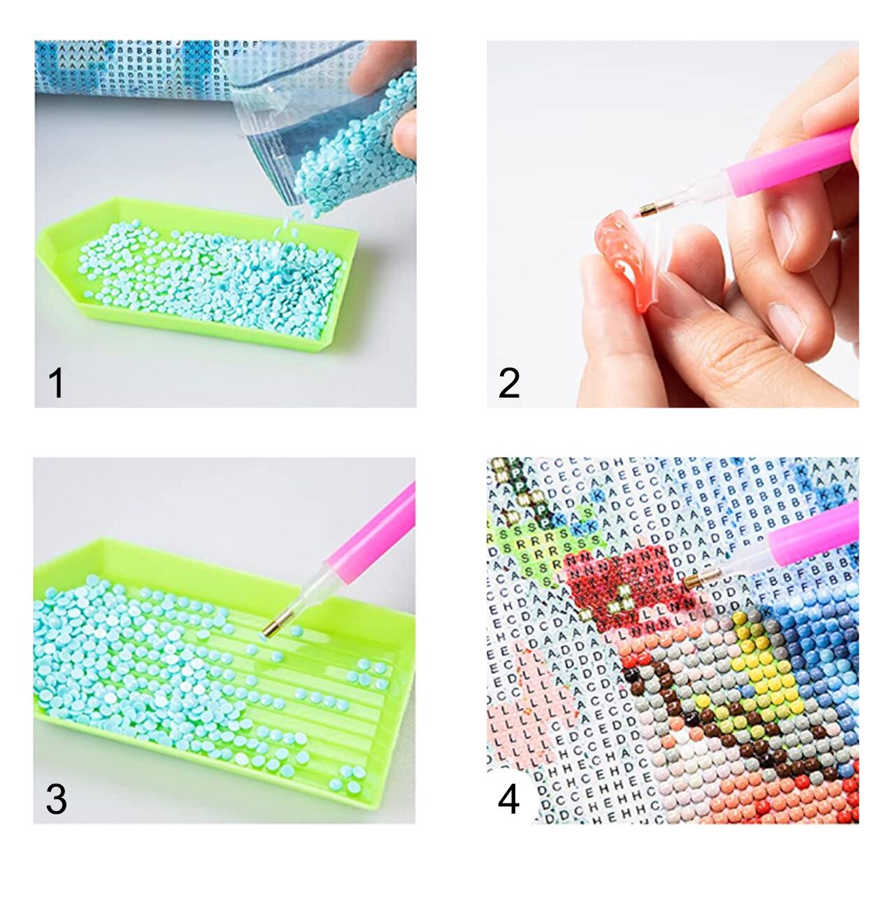 Das Set enthält viele verschiedene Arten von Stiften zum Auftragen von Diamanten. Sie haben unterschiedliche Enden, die es ermöglichen, unterschiedlich viele Perlen gleichzeitig auf die Leinwand aufzutragen.