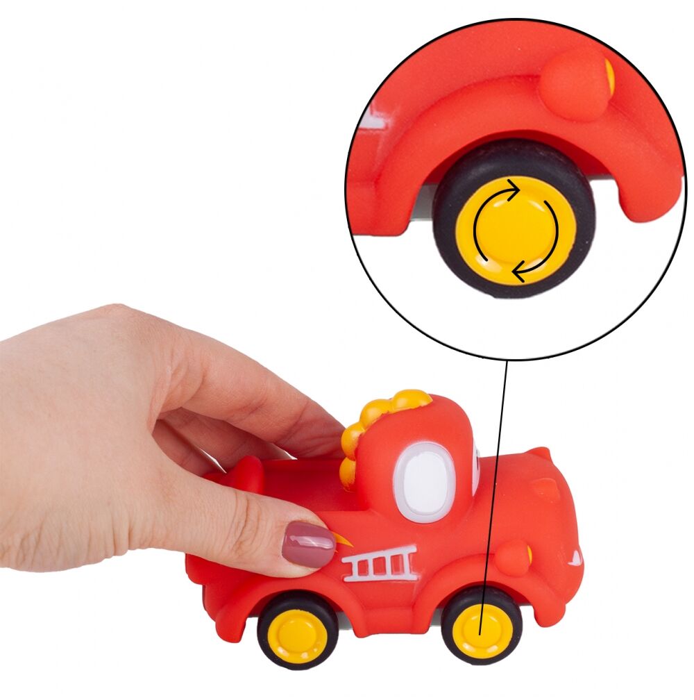 Nadwozia autek mają zaokrąglone krawędzie i wykonane są z gumy, dzięki czemu samochodziki są bardziej przyjazne w razie, gdy dziecko na nie upadnie.