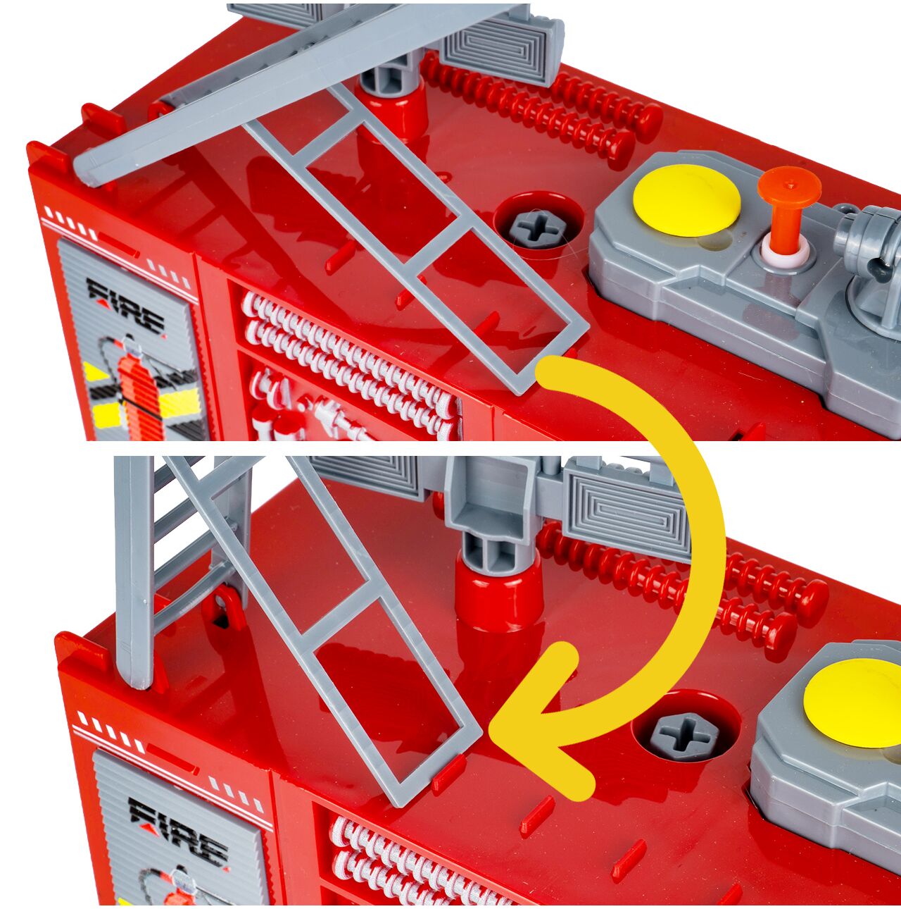 Střešní žebřík je pohyblivý a výsuvný , což dětem umožňuje umístit ho do různých poloh a vytvořit si ještě realističtější scény záchrany. To je důležitý detail, protože batole nejen tlačí auto, ale skutečně provádí specifické činnosti jako hasič: staví žebřík, řídí záchranu a spěchá na pomoc.
