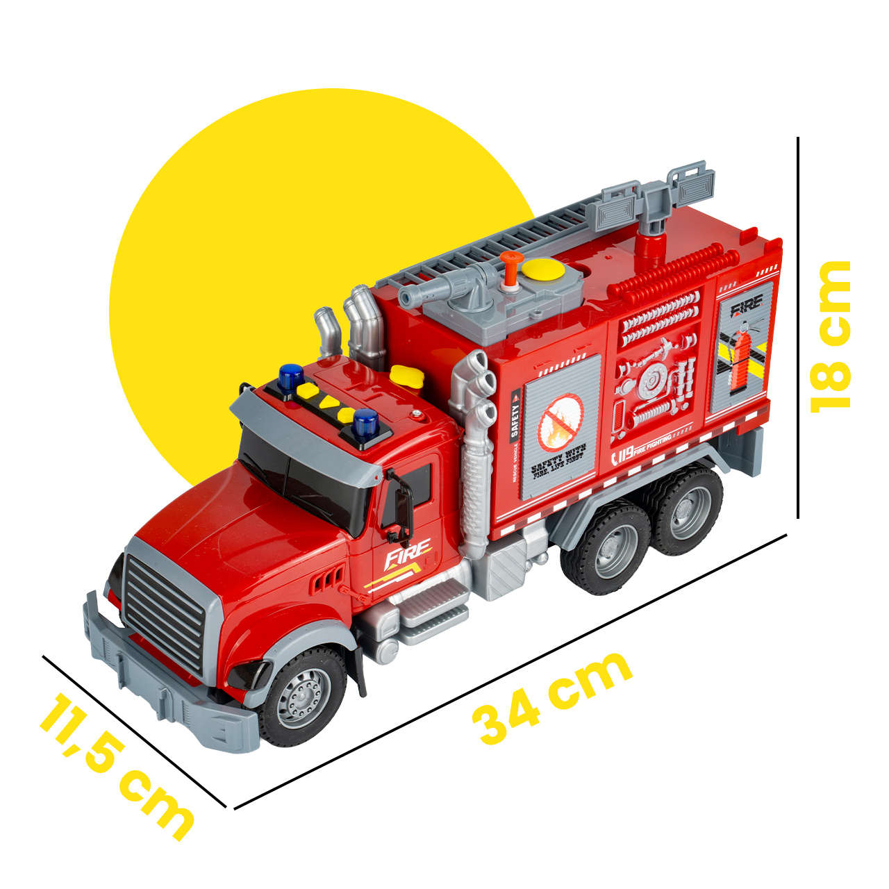 - velké hasičské auto o průměru 34 cm , které na první pohled udělá skvělý dojem