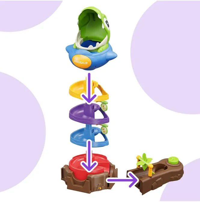 Motiv dinosaura, spirálové skluzavky a barevné míčky dodávají hračce velmi atraktivní vzhled a okamžitě povzbuzují k akci. Intenzivní barvy vypadají skvěle i v reálném životě a dále stimulují srdce.dětská zvědavost.