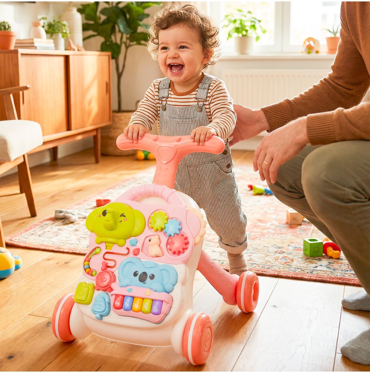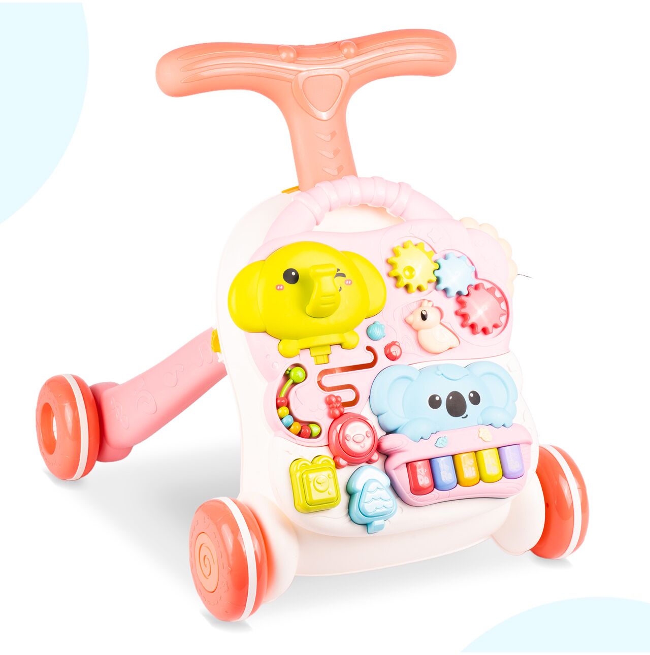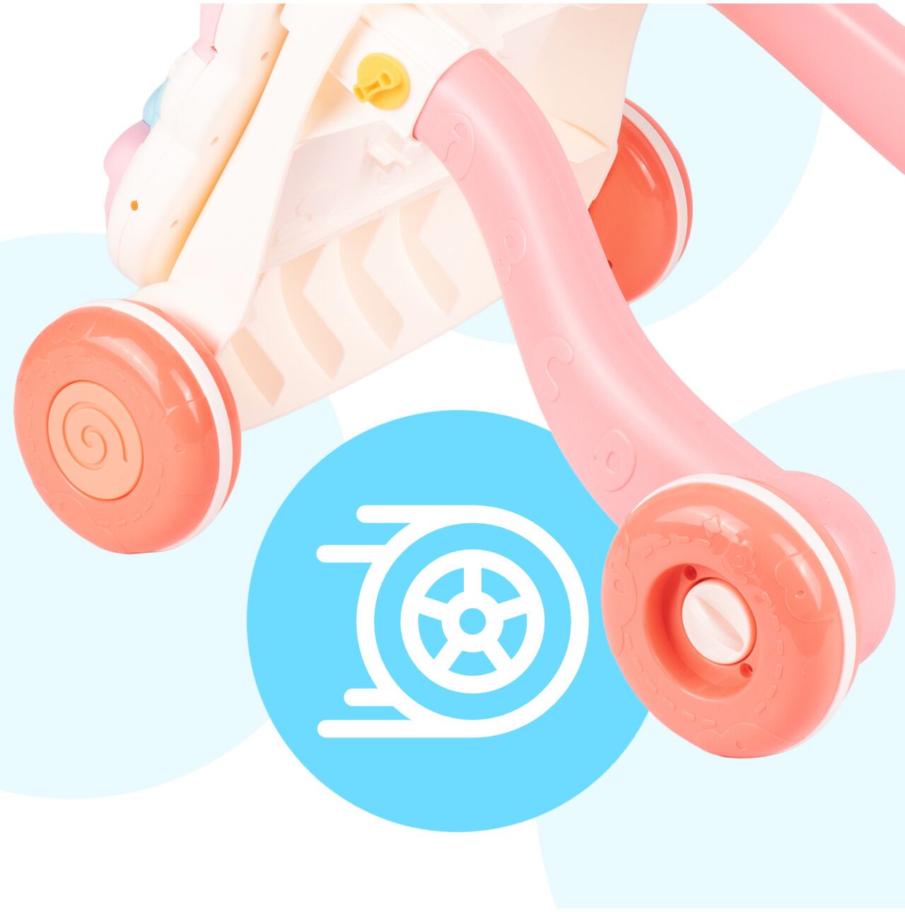 Robustní, široce rozmístěná kola pomáhají udržovat stabilitu při tlačení chodítka a dávají vašemu dítěti větší pocit bezpečí. To umožňuje vašemu dítěti dělat první krůčky s větší jistotou, procvičovat si rovnováhu a s radostí rozvíjet samostatnost.