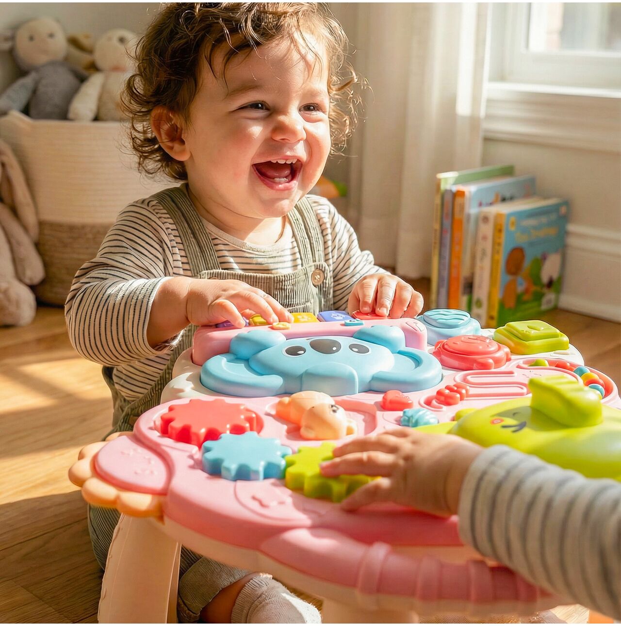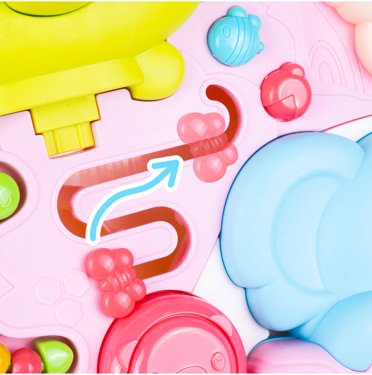 Panel obsahuje barevná ozubená kola, bludiště, pohyblivé části, tlačítka a klavír . Tato forma hry rozvíjí manuální zručnost, koordinaci ruka-oko a kognitivní zvědavost. Vaše dítě se nejen skvěle baví, ale také si procvičuje přesné pohyby a učí se o vztazích příčiny a následku.