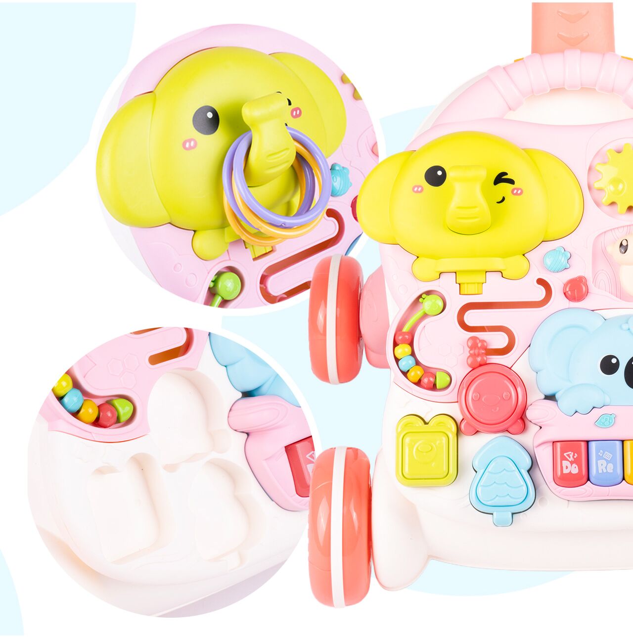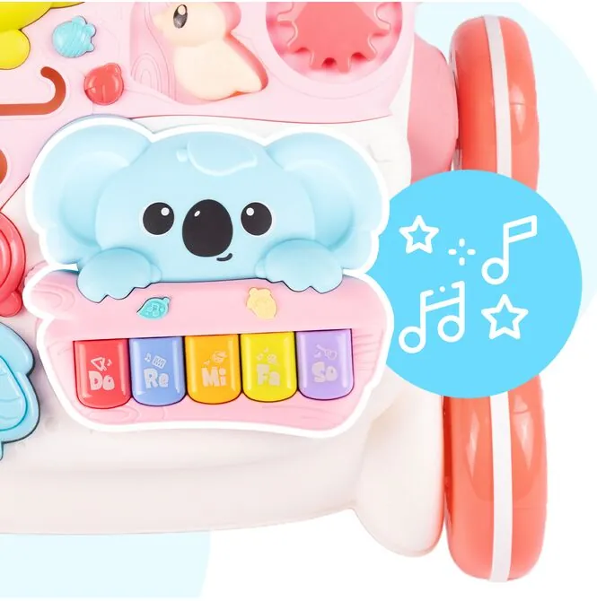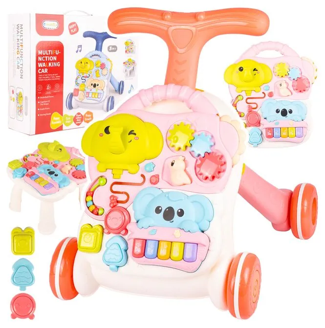 INTERAKTIVNÍ CHODÍTKO 3 V 1, VZDĚLÁVACÍ STŮL PRO DĚTI, RŮŽOVÝ