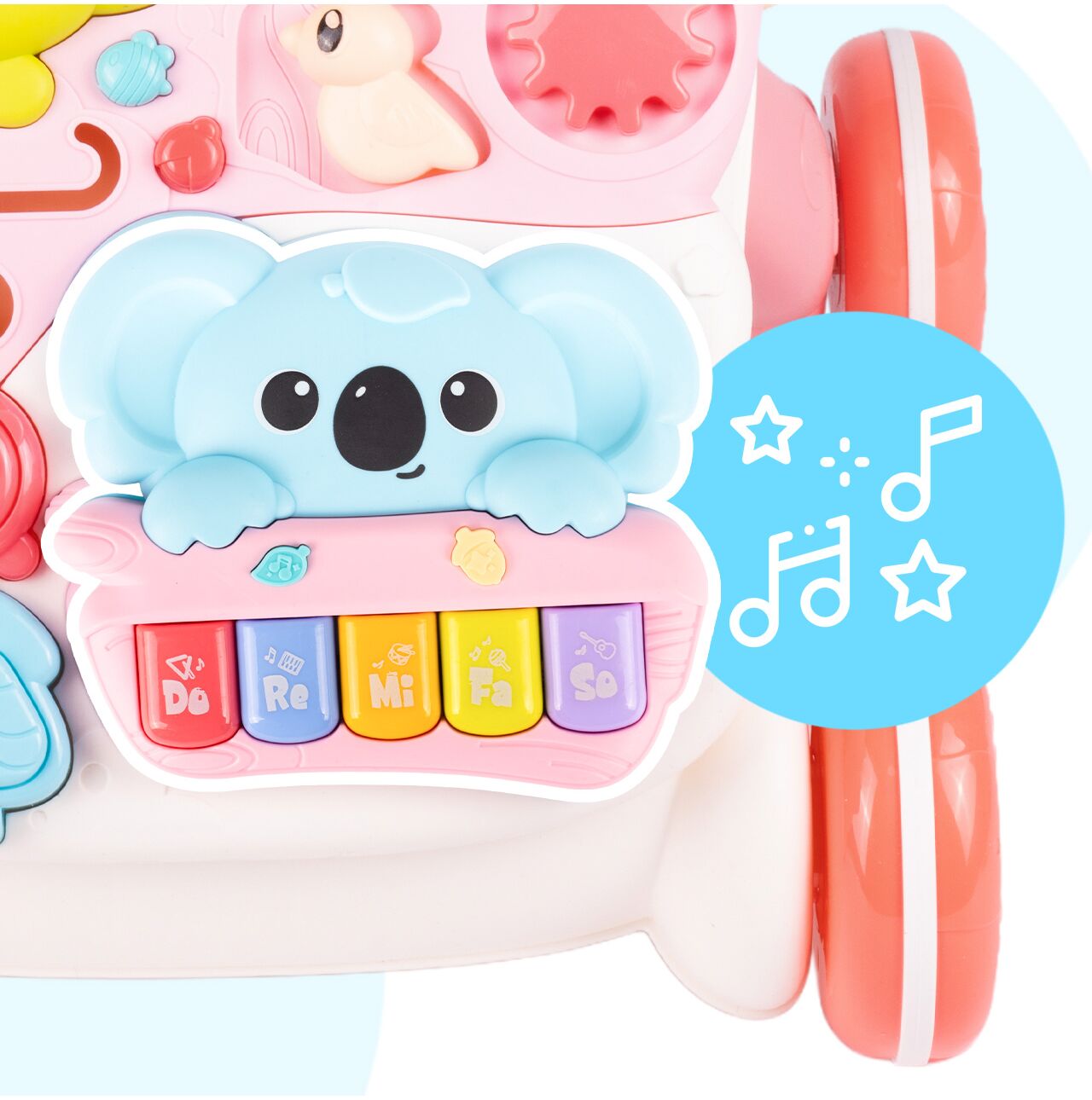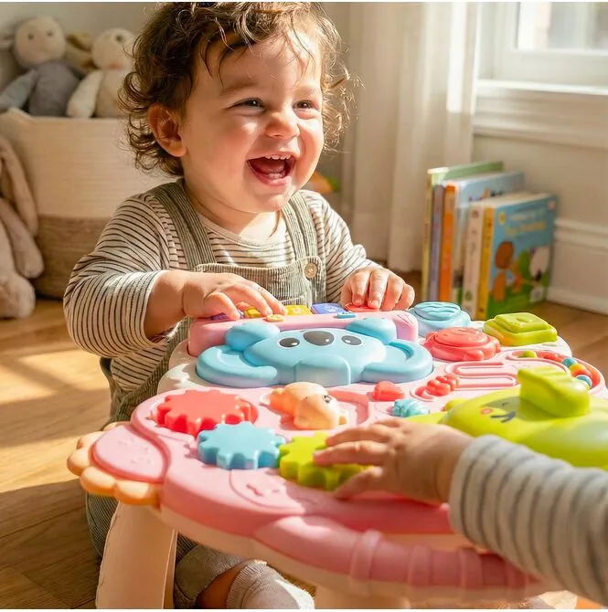 Není to jen odrážedlo , ale také stolek s aktivitami a interaktivní hrací panel . To umožňuje vašemu dítěti používat hračku různými způsoby – sedět, stát nebo s odrážedlem chodit . Je to skvělé řešení pro rodiče, kteří hledají jednu hračku s mnoha možnostmi.