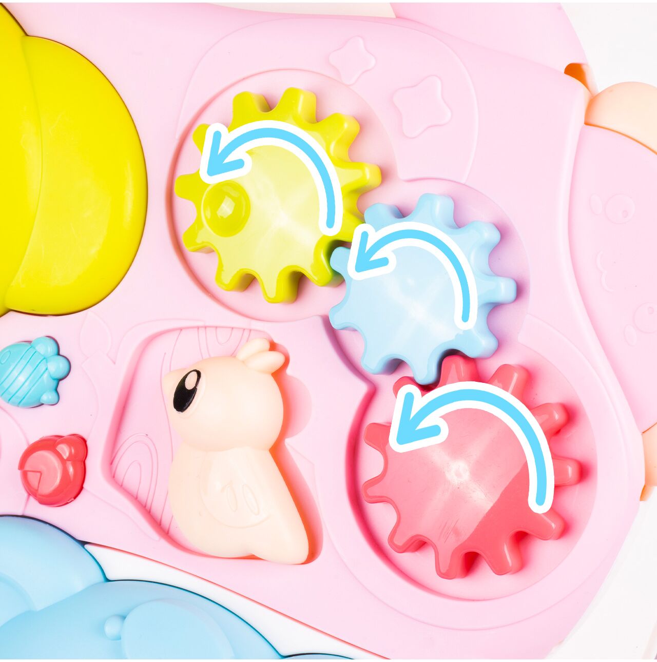 Otáčející se ozubená kola učí batolata o příčině a následku jednoduchým a poutavým způsobem. Otáčení ozubených kol podporuje rozvoj jemné motoriky, stimuluje fantazii a dětem dává uspokojení z nezávislého objevování nových funkcí.