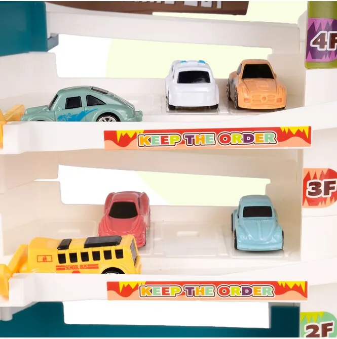 Sada nabízí tři parkovací úrovně s označenými úrovněmi 1. patro, 2. patro, 3. patro a 4. patro , což dětem umožňuje parkovat auta, přemisťovat je a organizovat dopravu podle vlastních pravidel. Je to skvělá zábava pro nejmenší, kteří si rádi organizují, aranžují a hrají si s vozidly.
