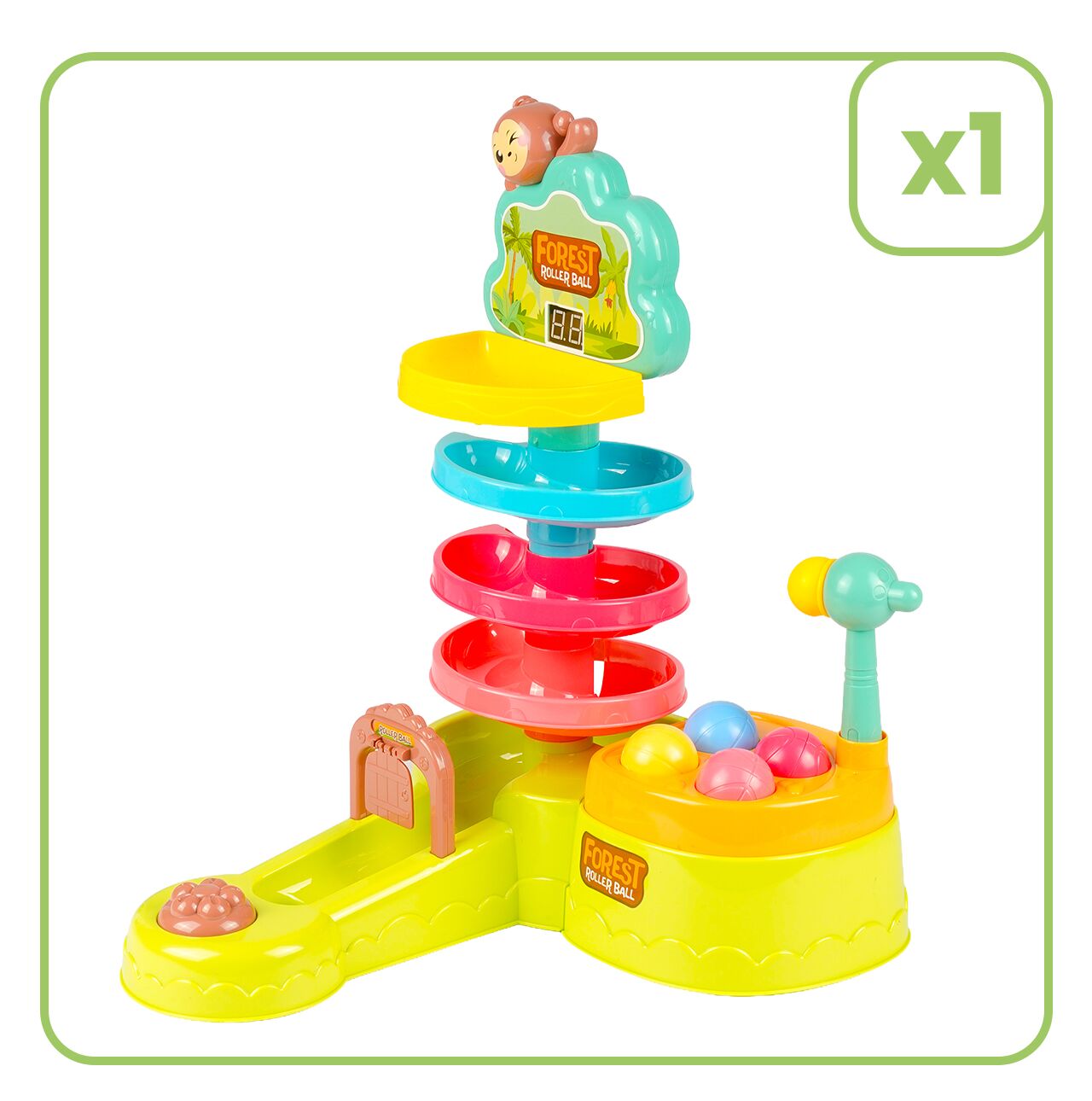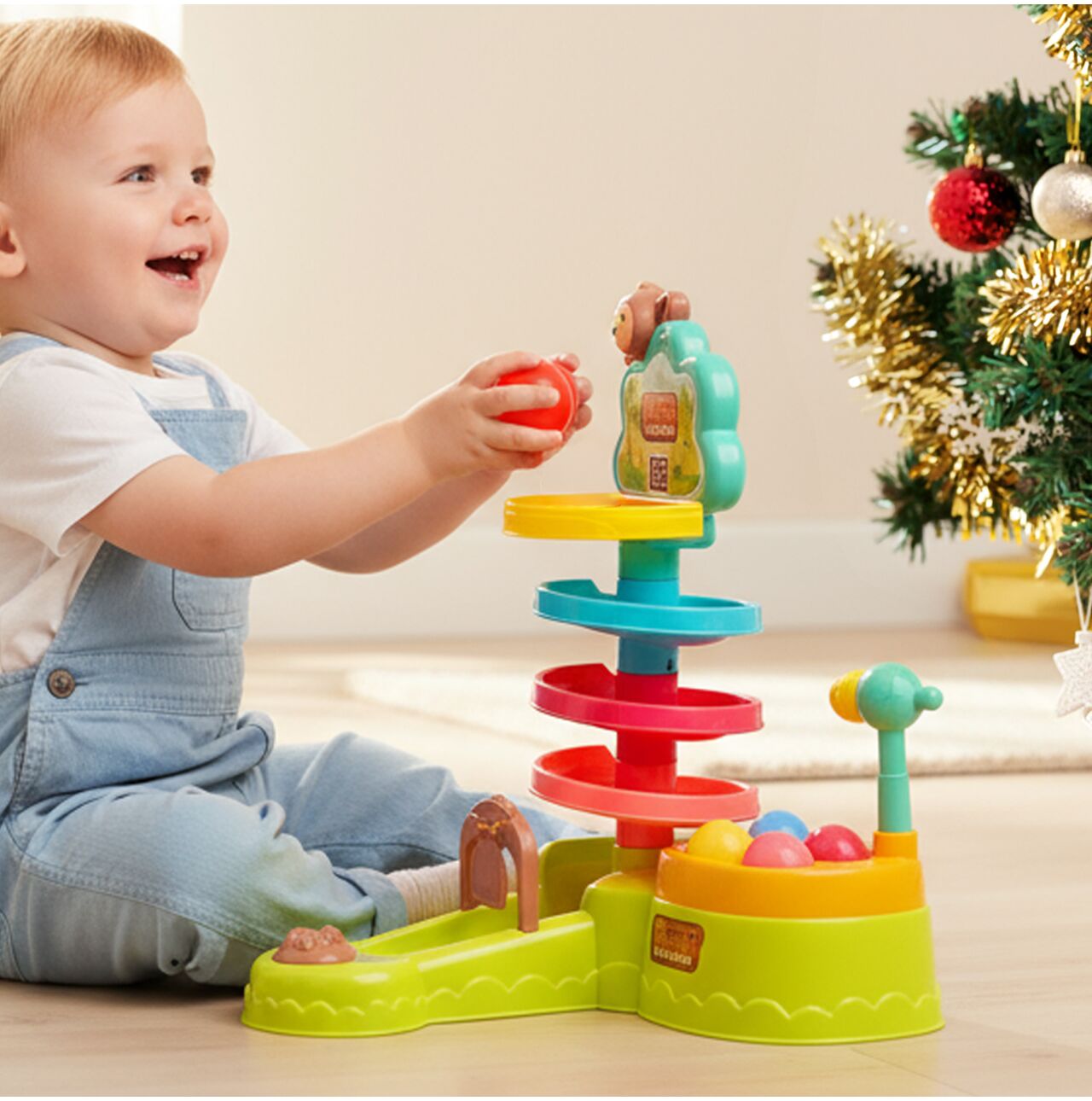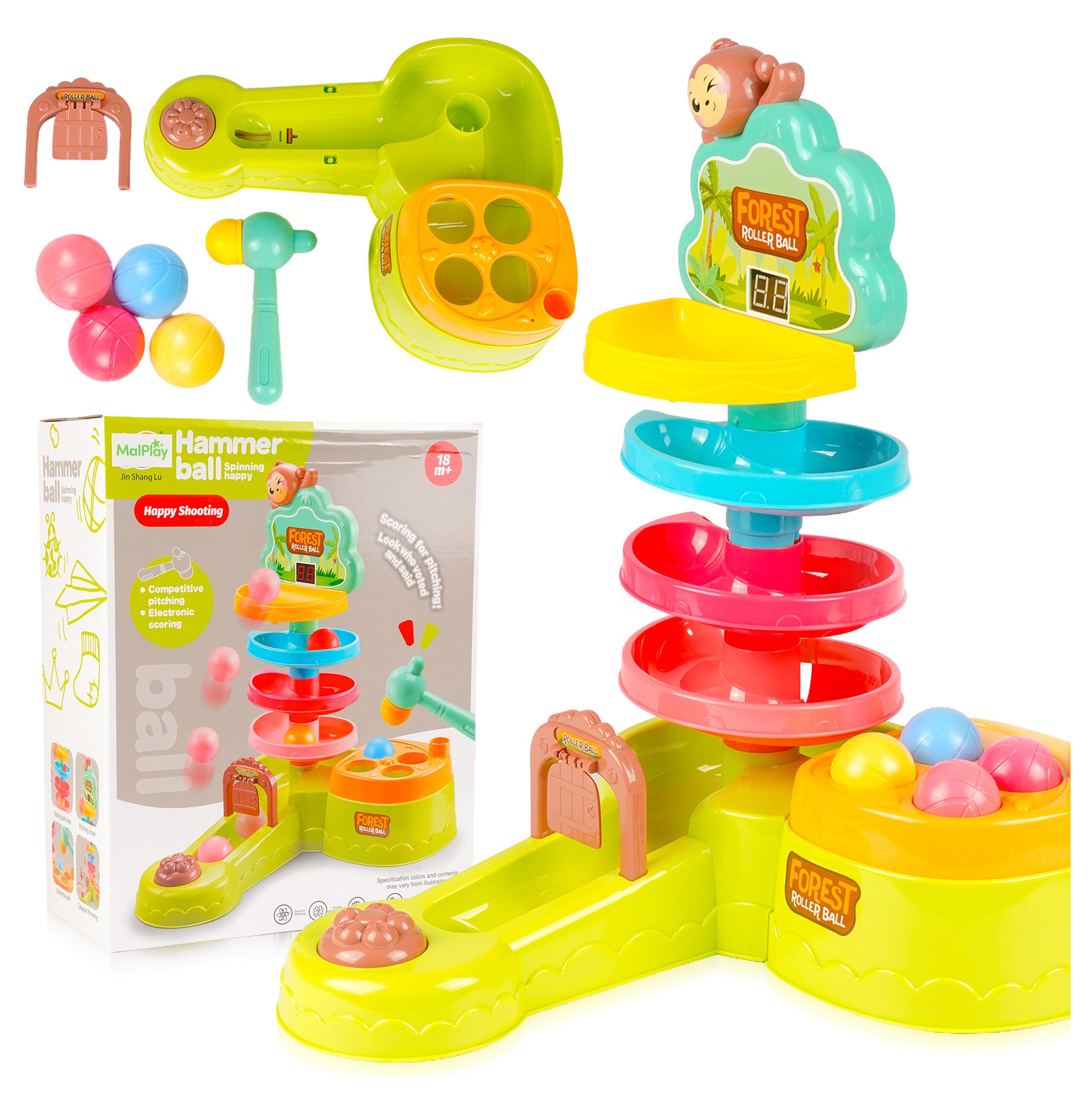 Měkce tvarované kladívko perfektně padne do dětské ruky. Dítě odpálí míček, ten zmizí v jamce a… začne se řítit dolů. Každý odpal přináší uspokojení a další bod na výsledkové tabuli. Je to jednoduchá, ale poutavá aktivita, která dokonale rozvíjí sílu úchopu, přesnost a koordinaci .