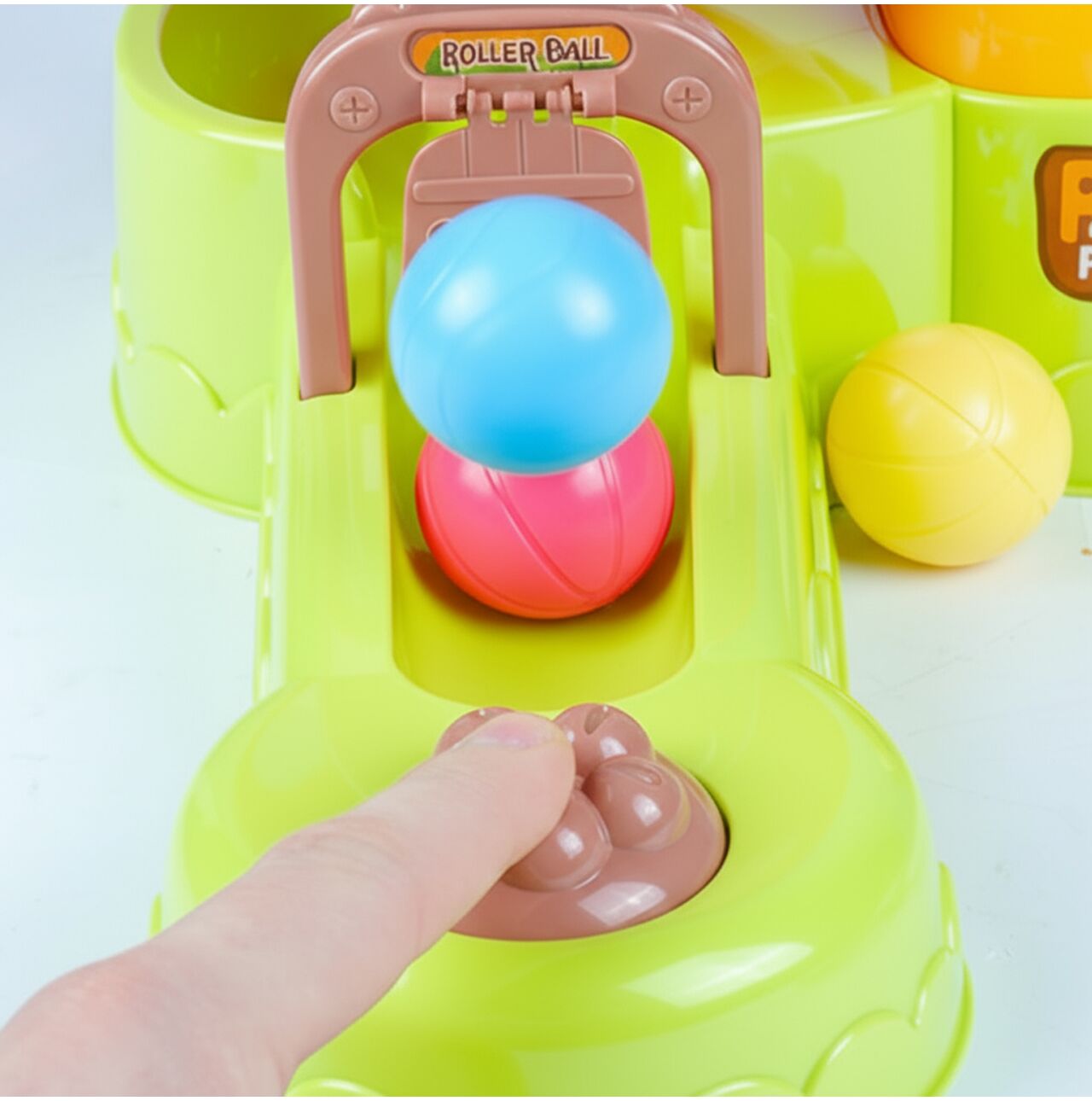 - 3 způsoby hry – odpalování míčků kladivem, házení z katapultu nebo házení po spirálové skluzavce .