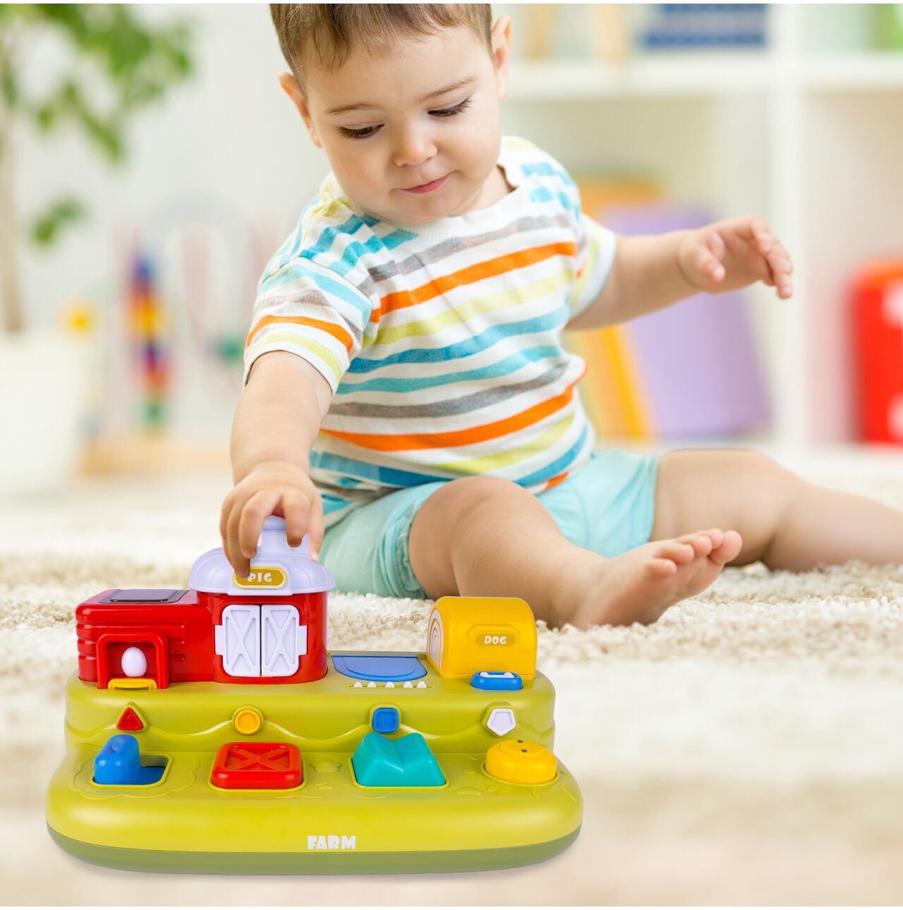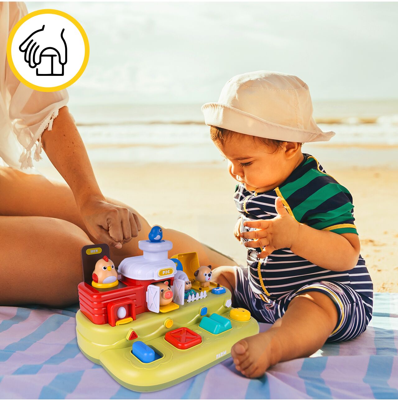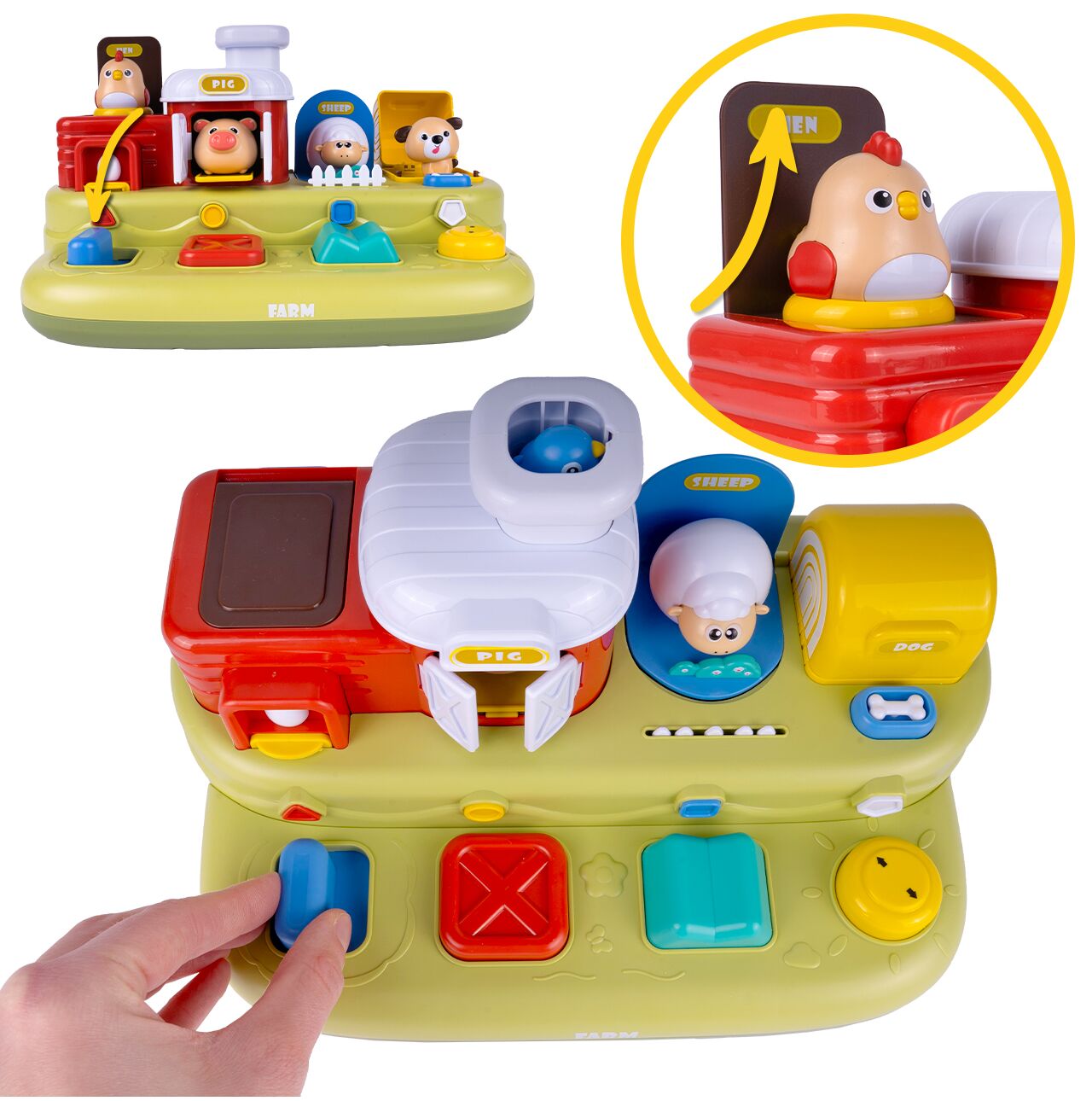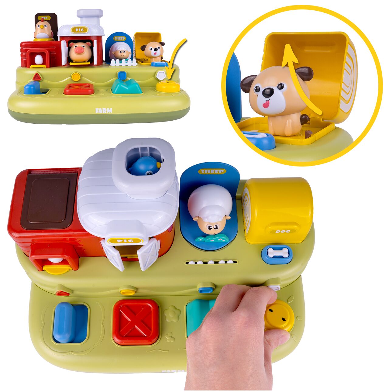 Tato vzdělávací hračka je dokonalým způsobem, jak uvést vaše batole do světa zvířat. Každé zvíře, ať už je to prase, ovce, slepice nebo pes , se skrývá ve svém domě a čeká na aktivaci. Díky interaktivní formě se dítě může samostatně rozhodnout, které zvířátko se na scéně objeví, což podporuje jeho kognitivní vývoj a obratnost.