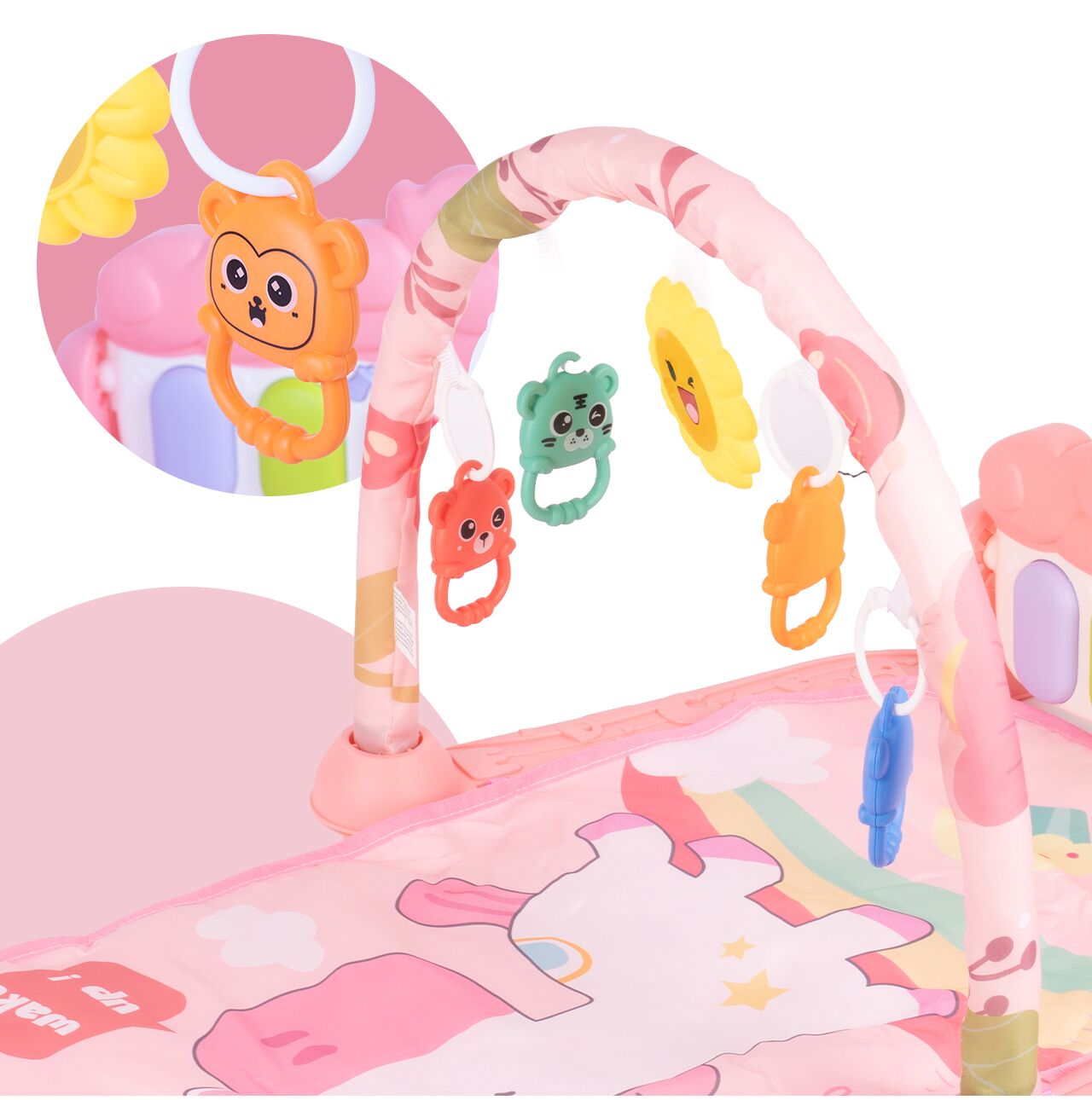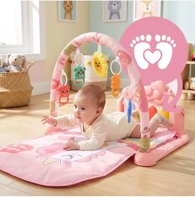 Interaktivní vzdělávací podložka s klavírem, chrastítky a kousátky pro miminka