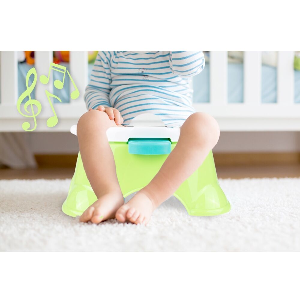 - Pri používaní nočníka dieťa sprevádzajú veselé zvukové efekty