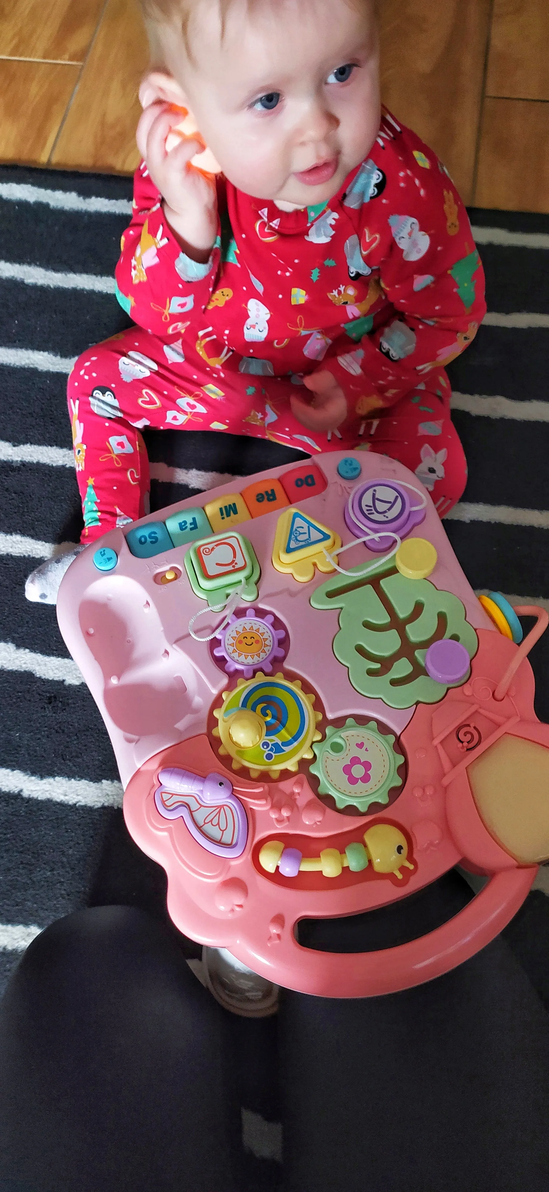 Prezentovaná jazda v kombinácii s edukačným panelom pôsobí nielen na učenie chôdze, ale podporuje aj jazykový, zmyslový a motorický vývoj bábätka, učí tvary, čísla a písmená. Náučné chodítko s interaktívnou zvukovou tabuľou sa veľmi jednoducho používa a skladá. Hračka je zabalená vo veľkej estetickej krabici, takže je vhodná ako darček pre čerstvých rodičov.