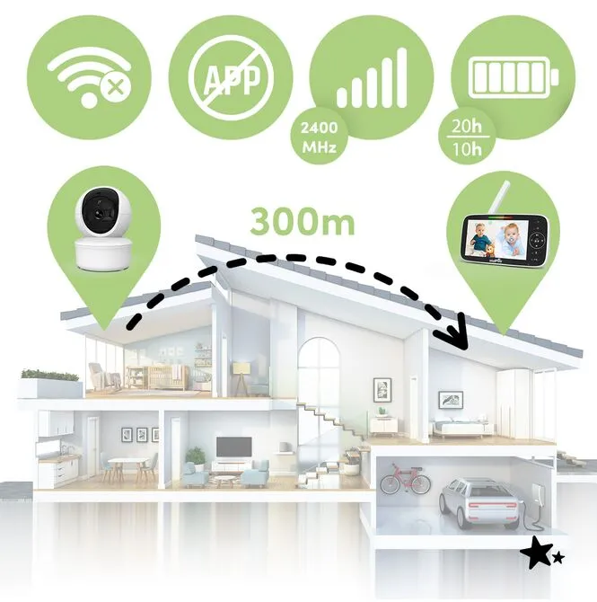 V kombinaci s monitorem Vision 5.0” umožňuje neustálé sledování a poslech vašeho dítěte v reálném čase, bez nutnosti použití Wi-Fi sítě.