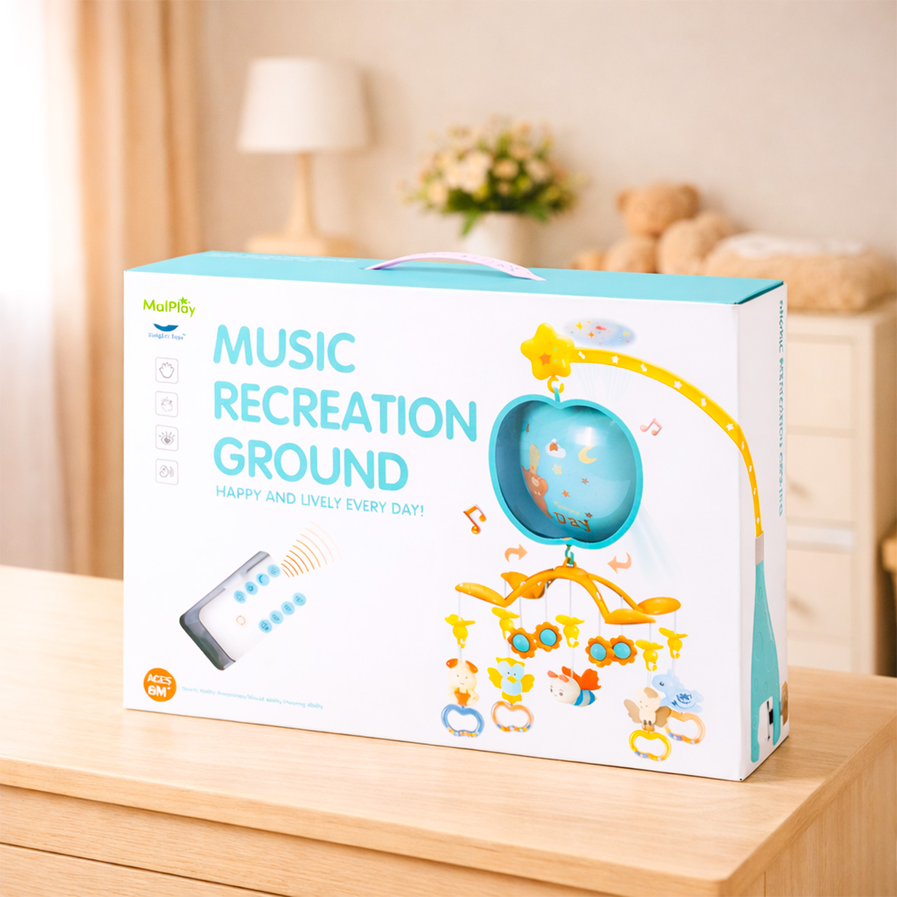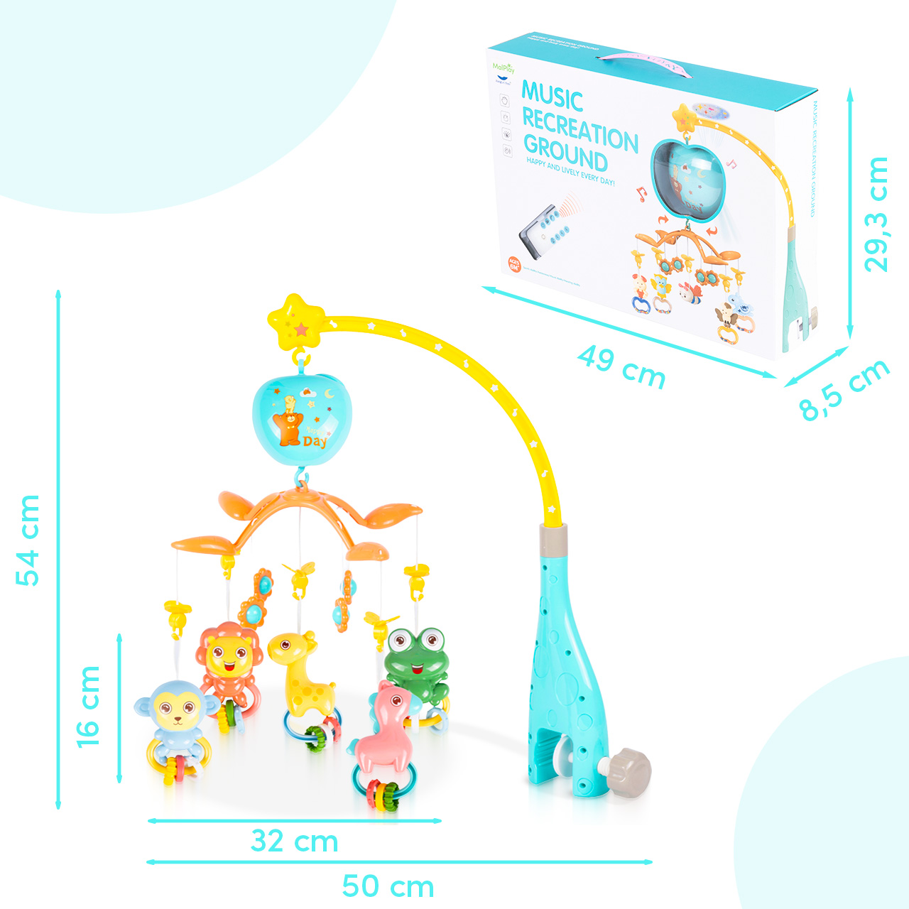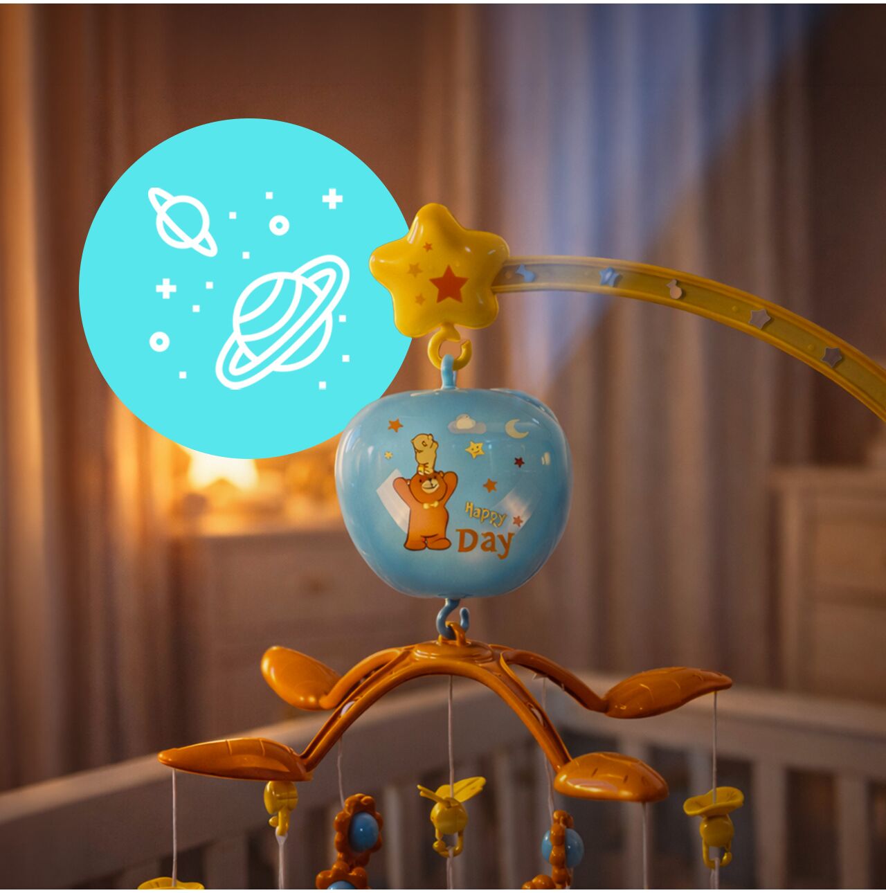 - Zastosowanie: łóżeczko niemowlęce, wyciszenie, sen, zabawa sensoryczna