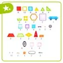 - 130 elementów: kwadraty, trójkąty, sześciokąty, akcesoria okienne, drzwiczki, podwozie z kołami, stojak i oś do koła widokowego.
